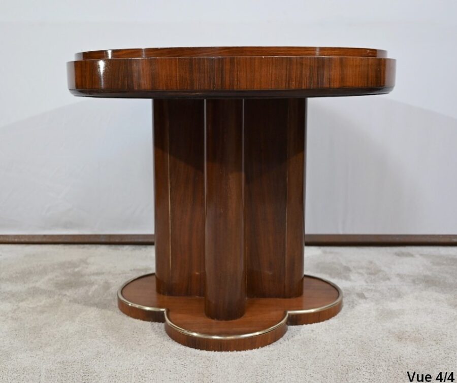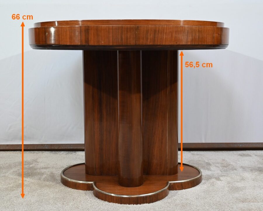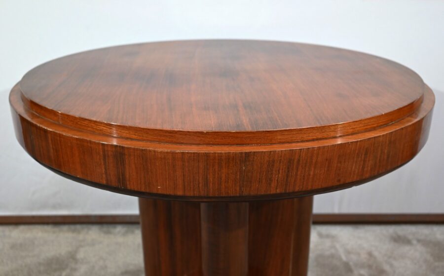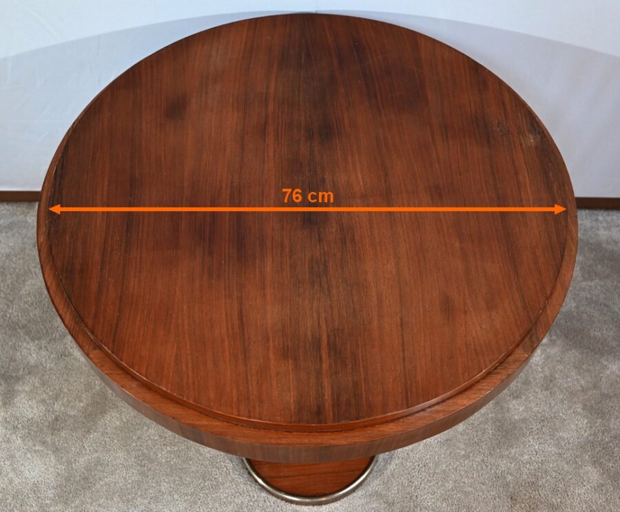 Guéridon en acajou, Art Déco, attribué au célèbre créateur et décorateur français Jules-Emile Leleu (1883-1961). Décoré Officier de l’Ordre des Arts et des Lettres, Leleu est connu pour avoir notamment réalisé l’ameublement de grands paquebots français et de bâtiments administratifs à travers le monde.