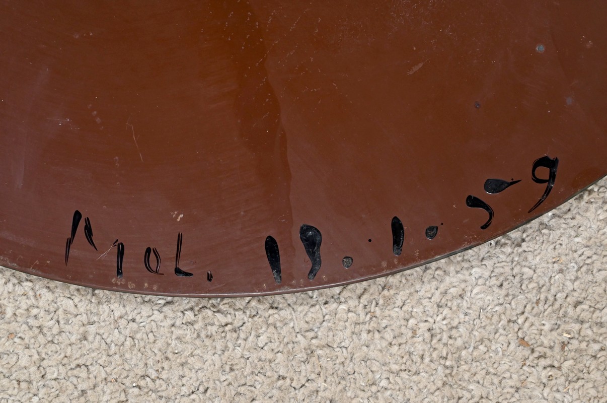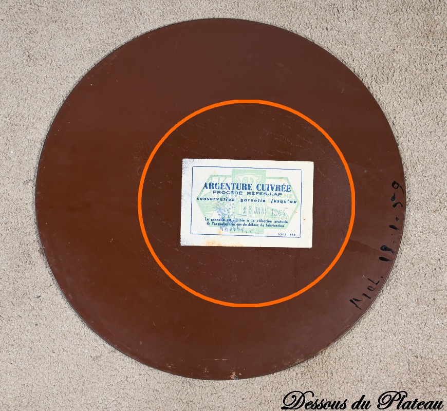 L’argenture cuivrée, de ce dernier, en parfait état, a été réalisée par le biais d’un procédé appelé Rèfes-Lap avec garantie de cinq ans jusqu’au 13 janvier 1964, étiquette au revers faisant foi.