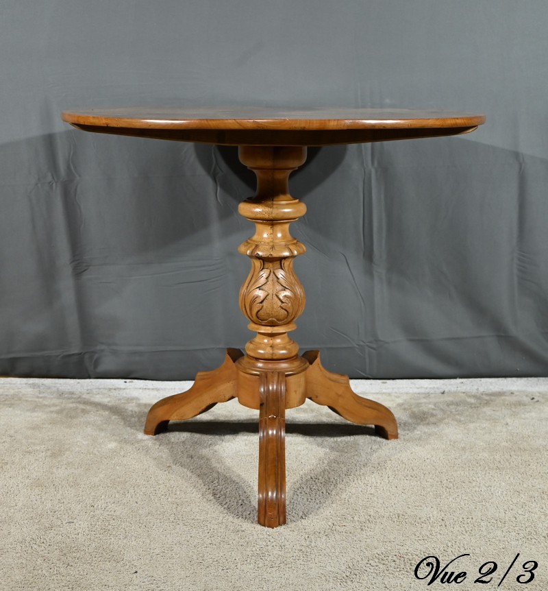 Guéridon en merisier présentant une teinte chaude et un fini brillant mettant en valeur son caractère antique.