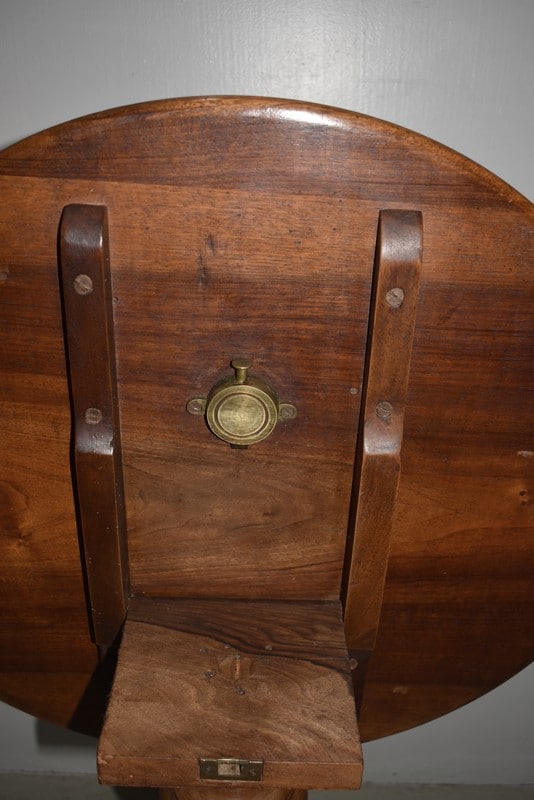 Le plateau, à double moulure sur son pourtour, est posé sur un fût central tourné , il est basculant, grâce à un système, permettant ainsi de réduire son encombrement.