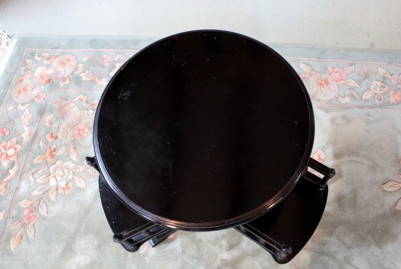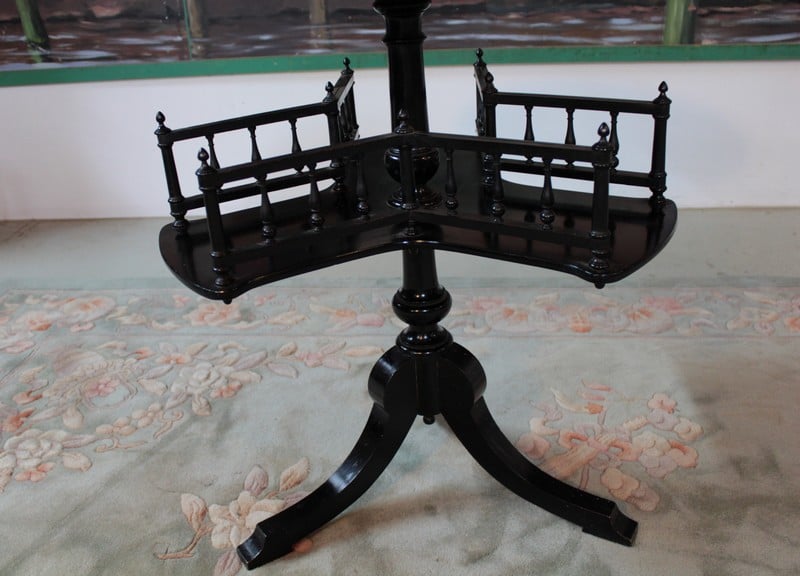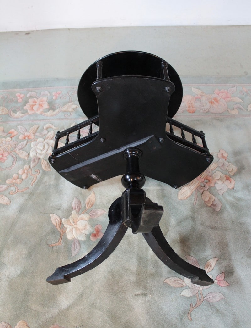 Petit guéridon porte-revues NAPOLÉON III en bois noirci reposant sur un pied tripode. Fin XIXe