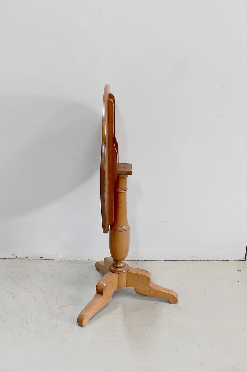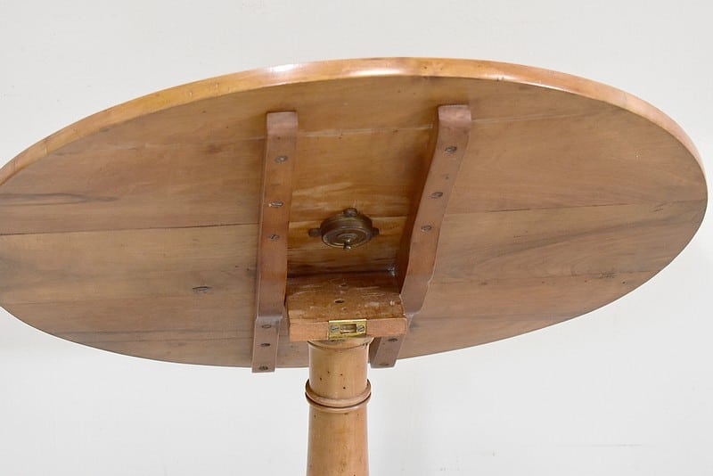 Son fût en balustre est orné de 2 rainures horizontales à mi-hauteur et terminé en moulures rejoignant le pied tripode découpé.