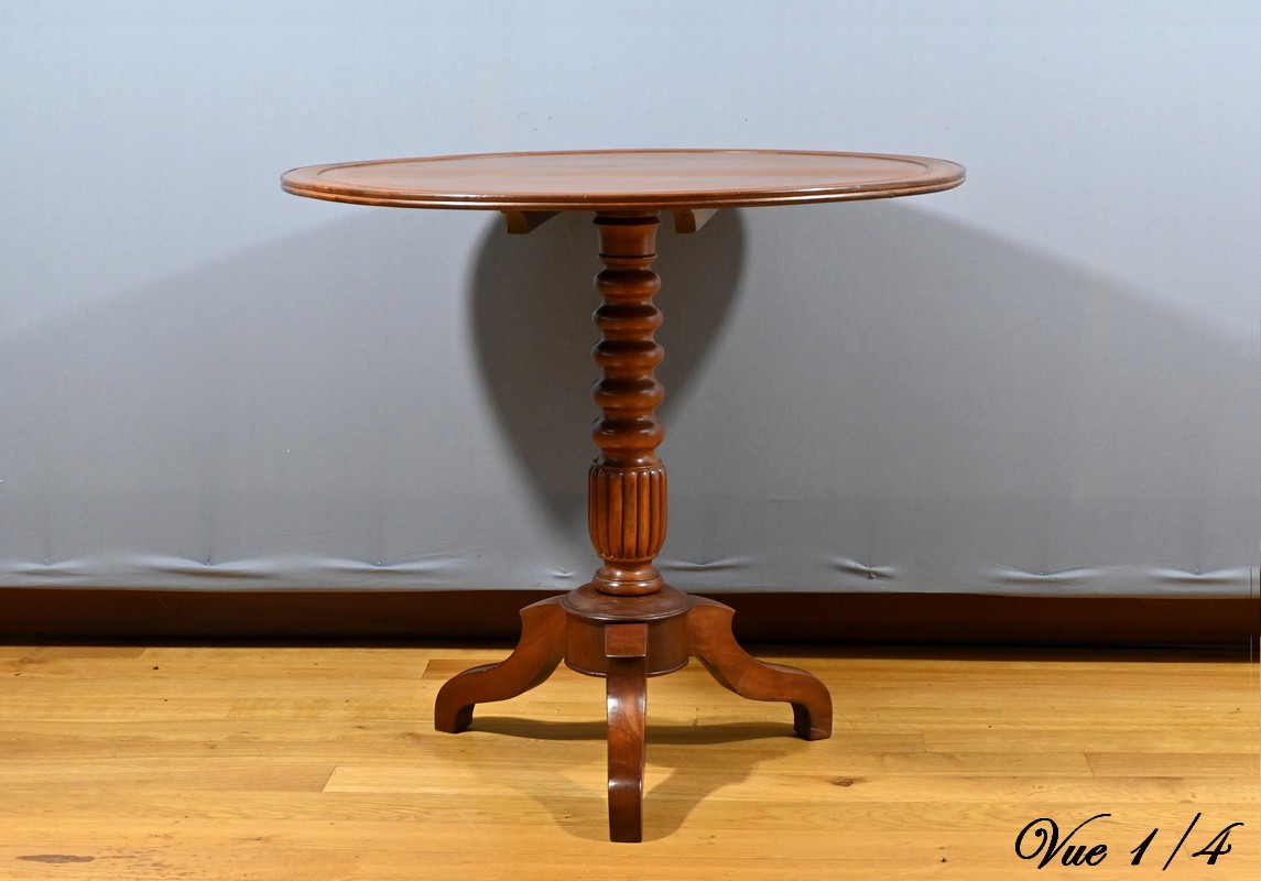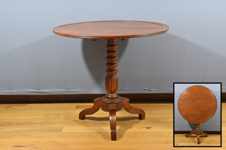 Ce guéridon à système en acajou, d’époque Louis Philippe et datant du milieu du XIXe siècle, est une pièce de mobilier ingénieuse et élégante.