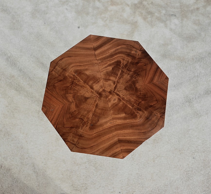 Sous la ceinture formant coffre, nous découvrons 8 pans en ronce d’acajou dans le sens vertical et une moulure légèrement en gorge.