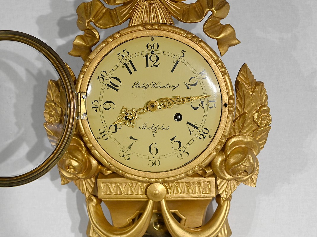 Le cadran quant à lui affiche les heures et les minutes. Il est signé « Rudolf Wennberg – Stockholm », célèbre horloger suédois du début du XXe siècle.