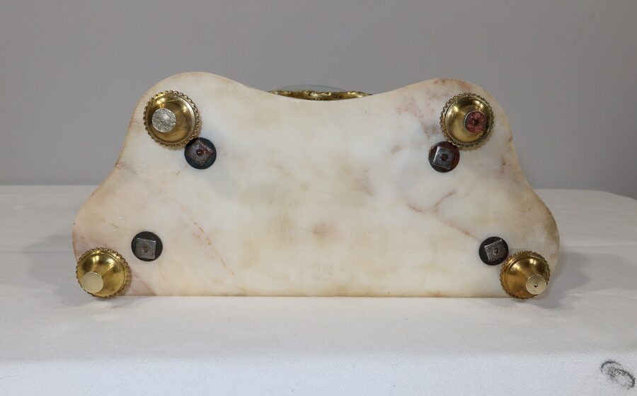 Cette pendule en bronze doré Louis XVI vous ravira par sa finesse, son marbre lumineux et ses ornementations.