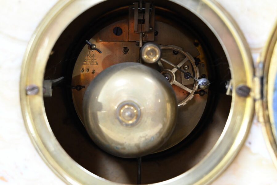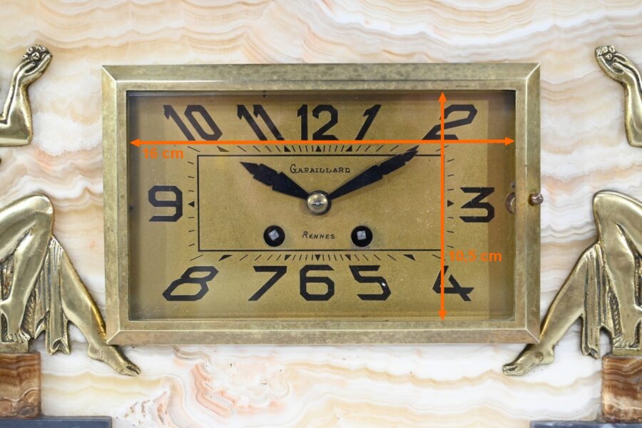 L’horloge rectangulaire est estampillée par l’horloger Alexandre Gapaillard fondateur du Grand Comptoir National d’horlogerie en 1850 à Rennes.