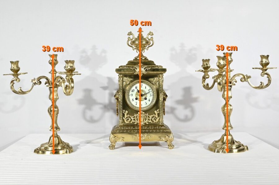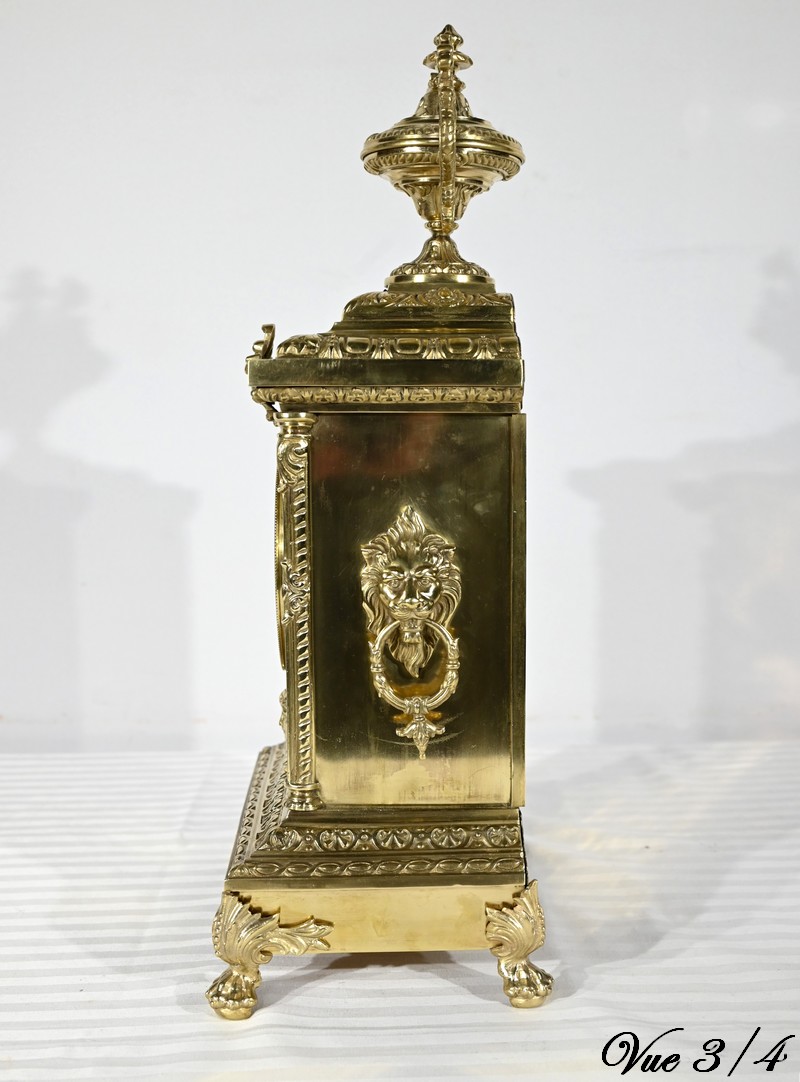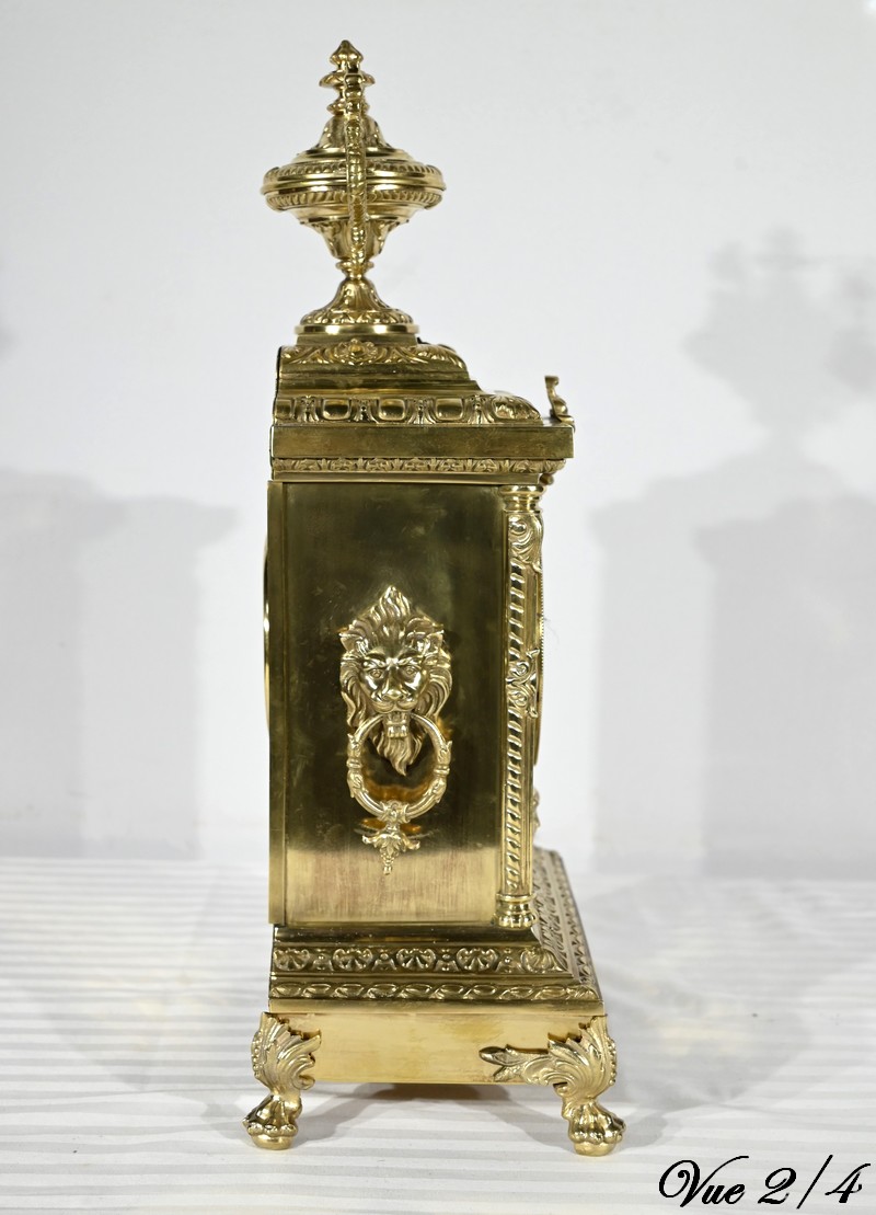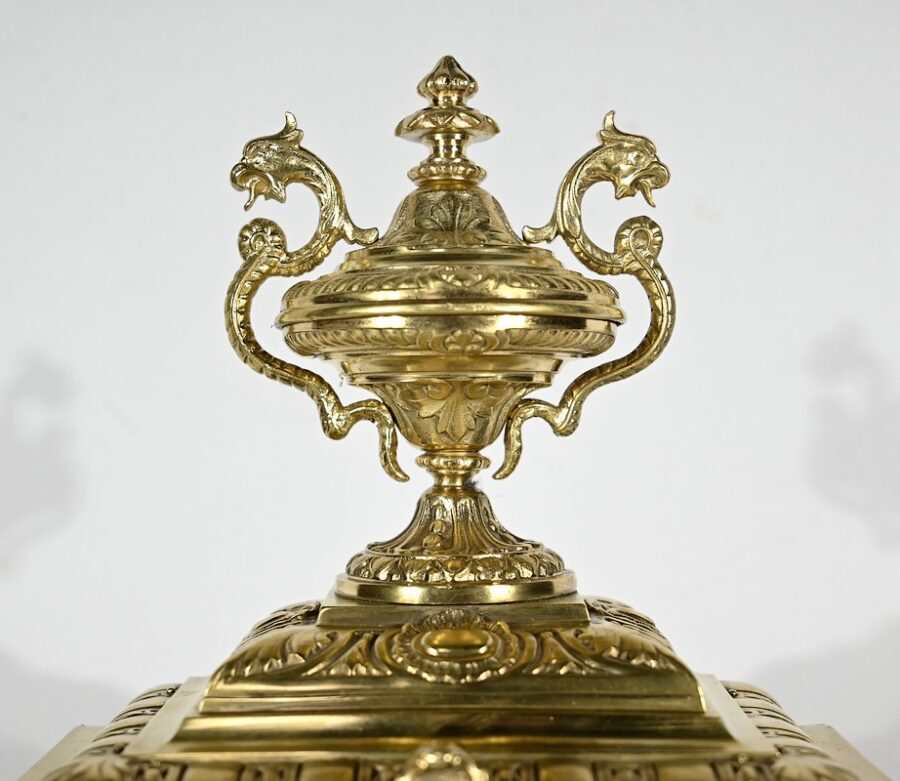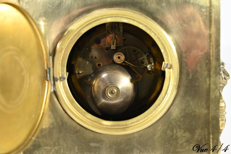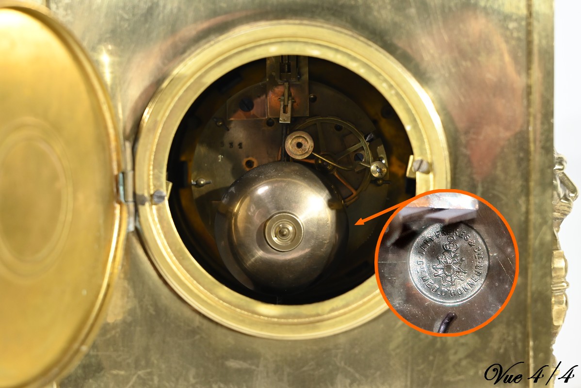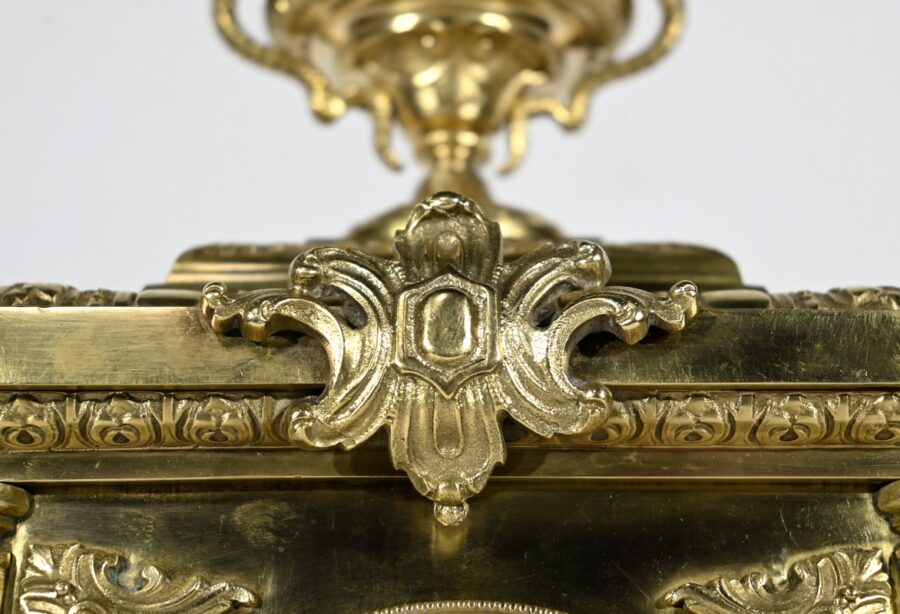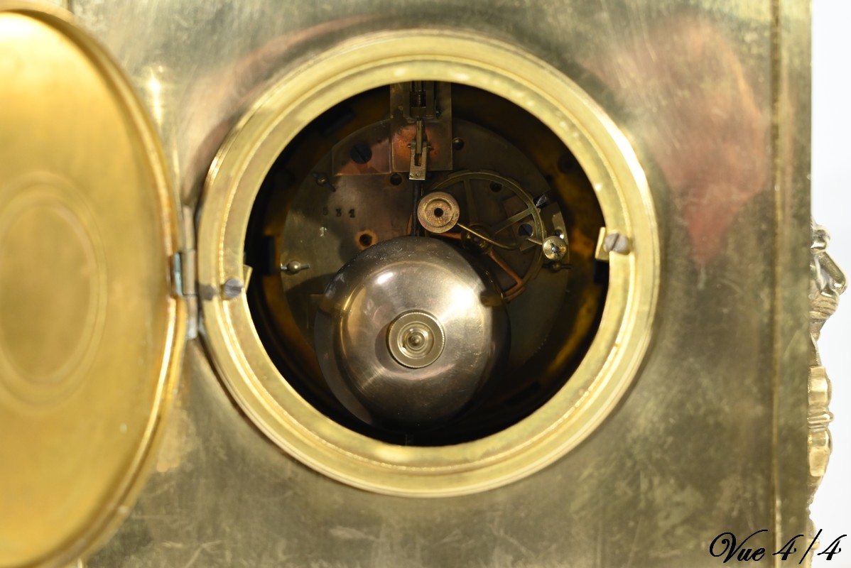À l’amortissement, une grande coupe aux anses de chimère apporte un style magistral à ce garde temps.