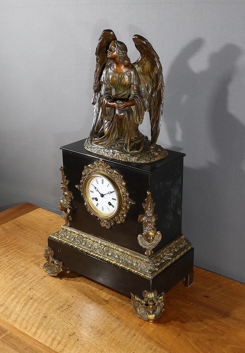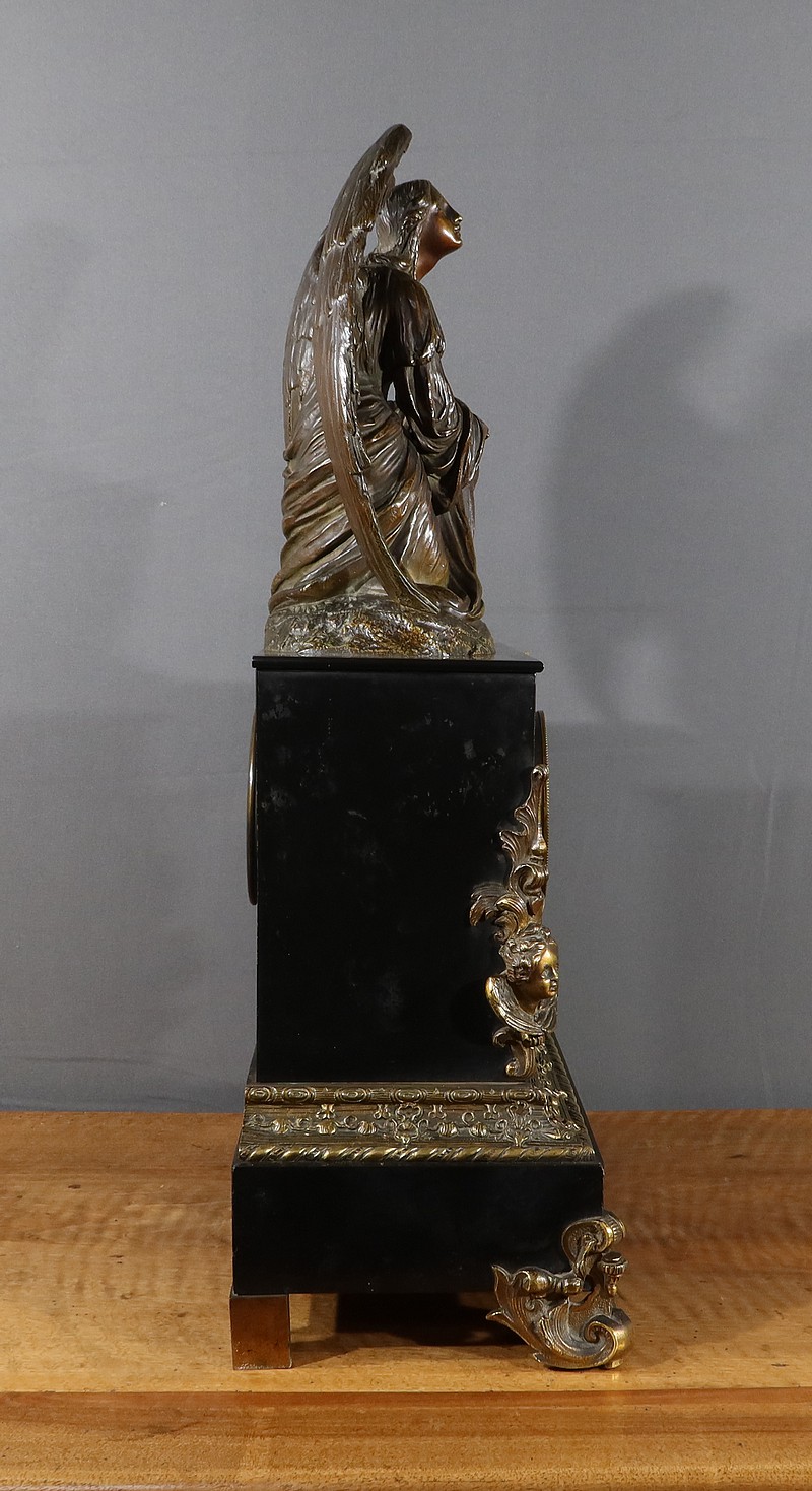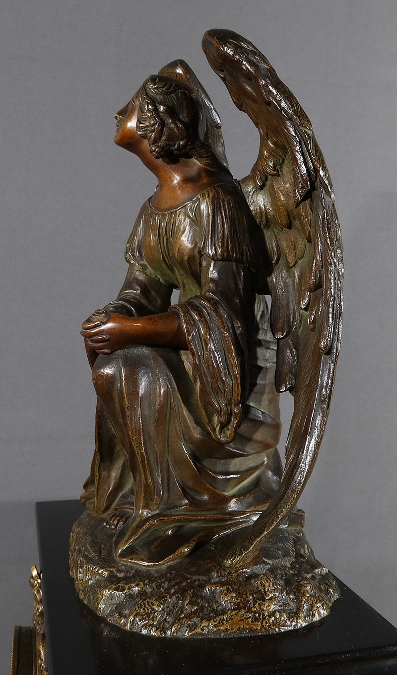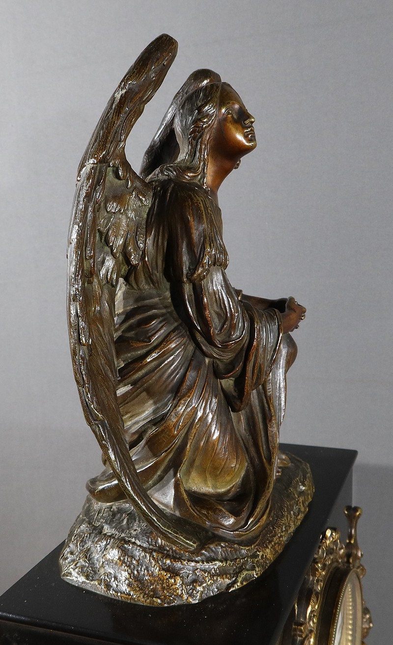Horloge en Marbre et Bronze, « L’Ange en Contemplation » , Miroy Frères, époque Napoléon III – Milieu XIXe