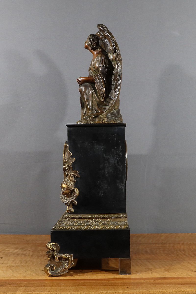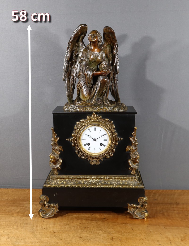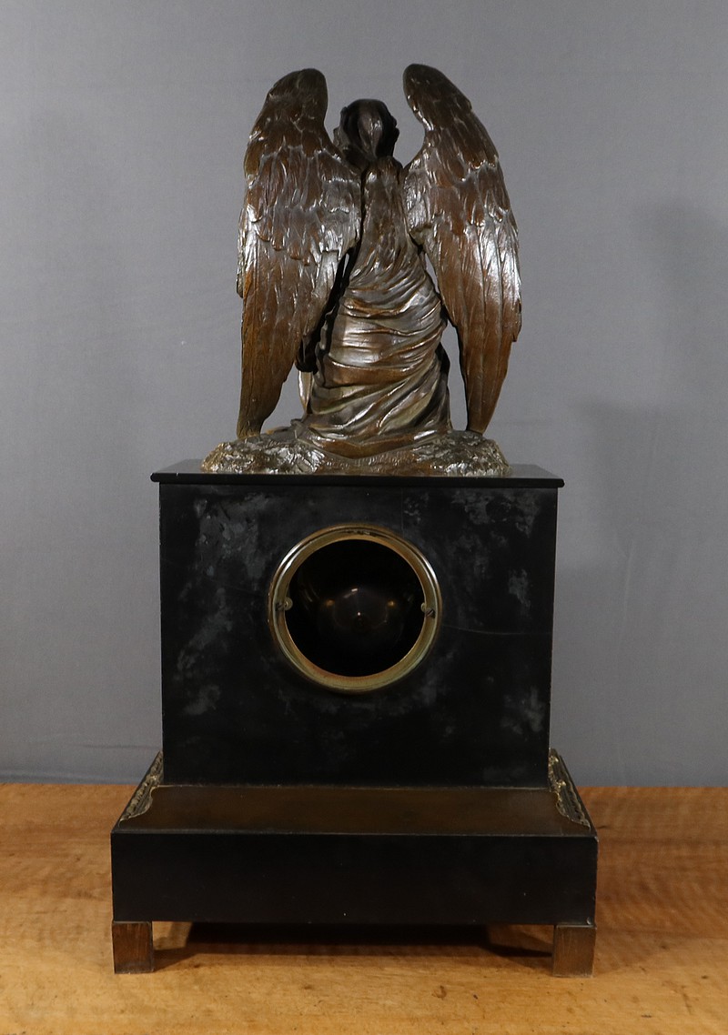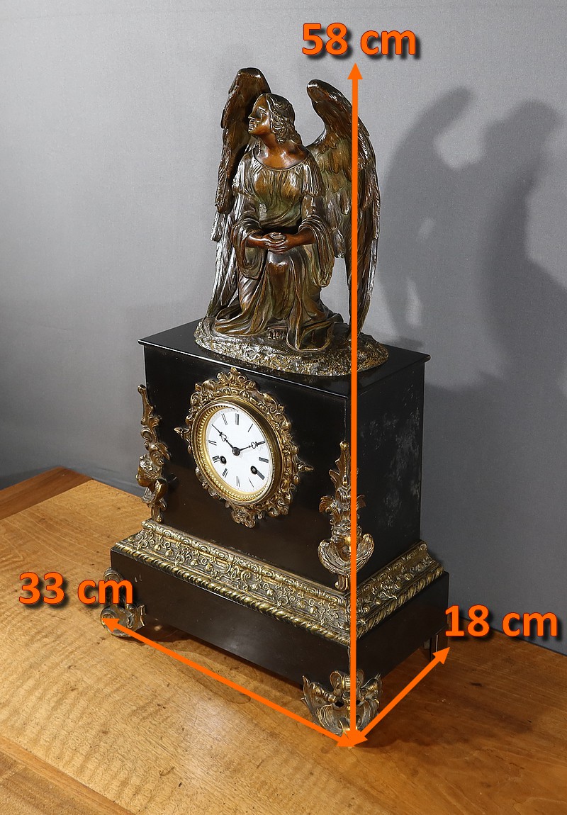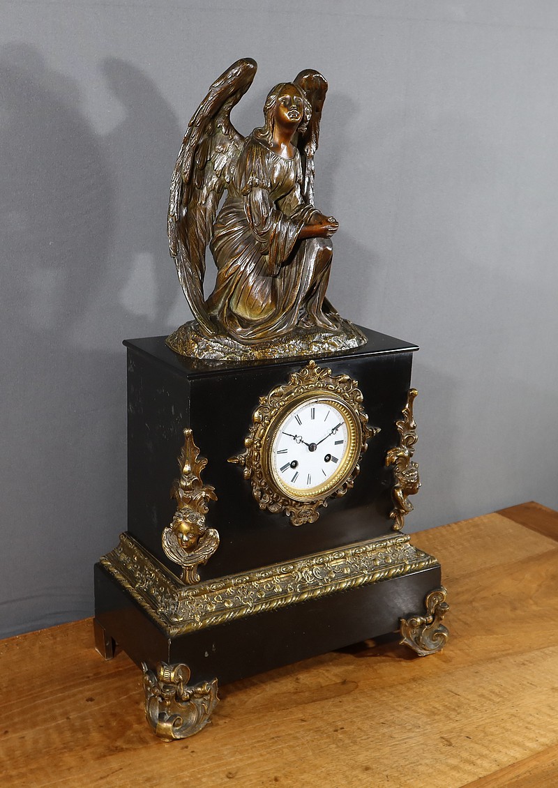 Horloge en Marbre et Bronze, « L’Ange en Contemplation » , Miroy Frères, époque Napoléon III – Milieu XIXe