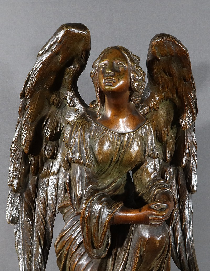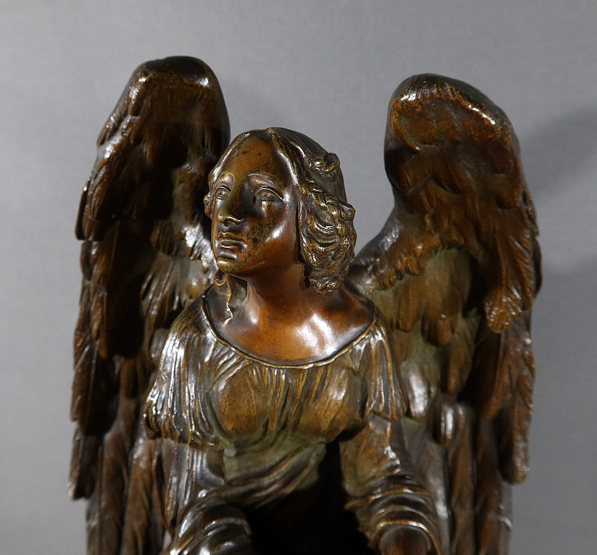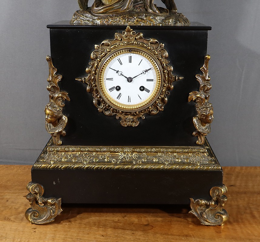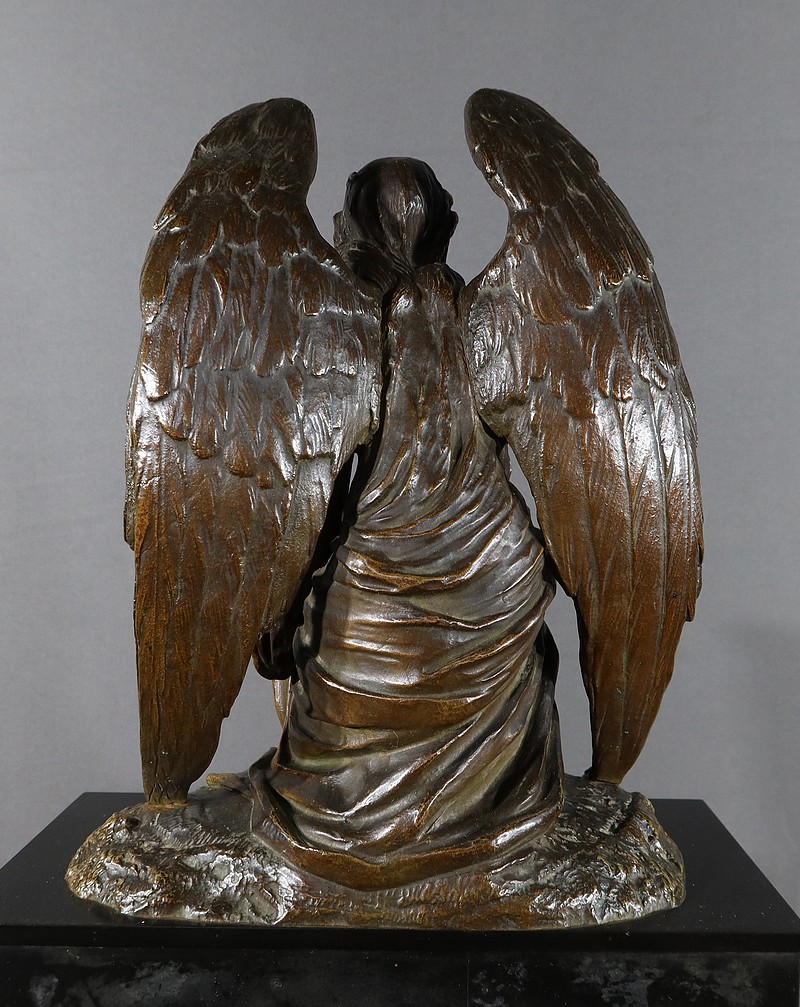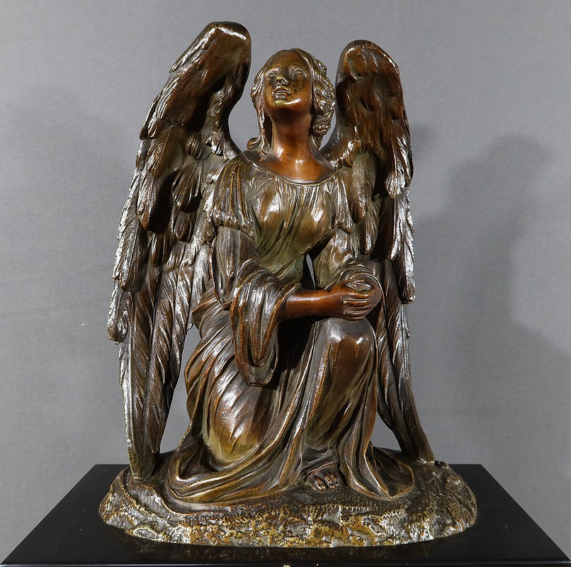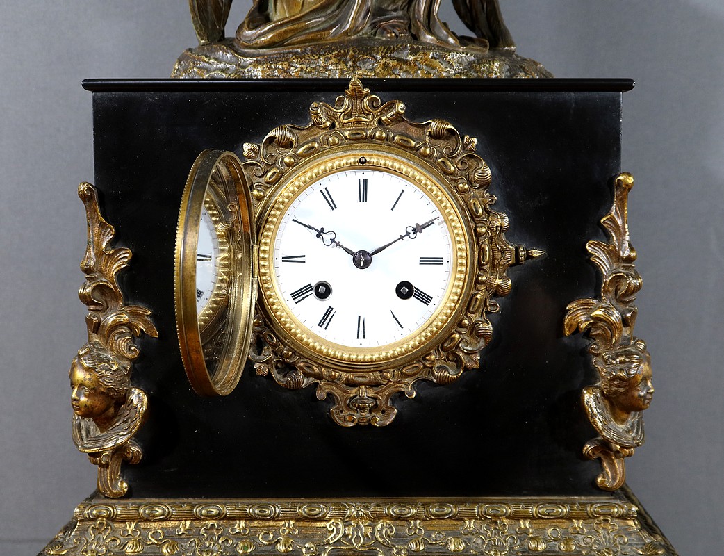 Horloge en Marbre et Bronze, « L’Ange en Contemplation » , Miroy Frères, époque Napoléon III – Milieu XIXe