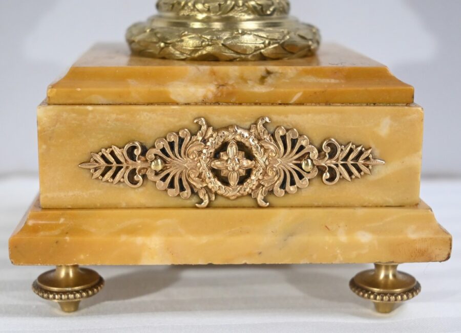 L’ensemble repose sur un socle à décor de palmette se terminant par de petits pieds toupies.