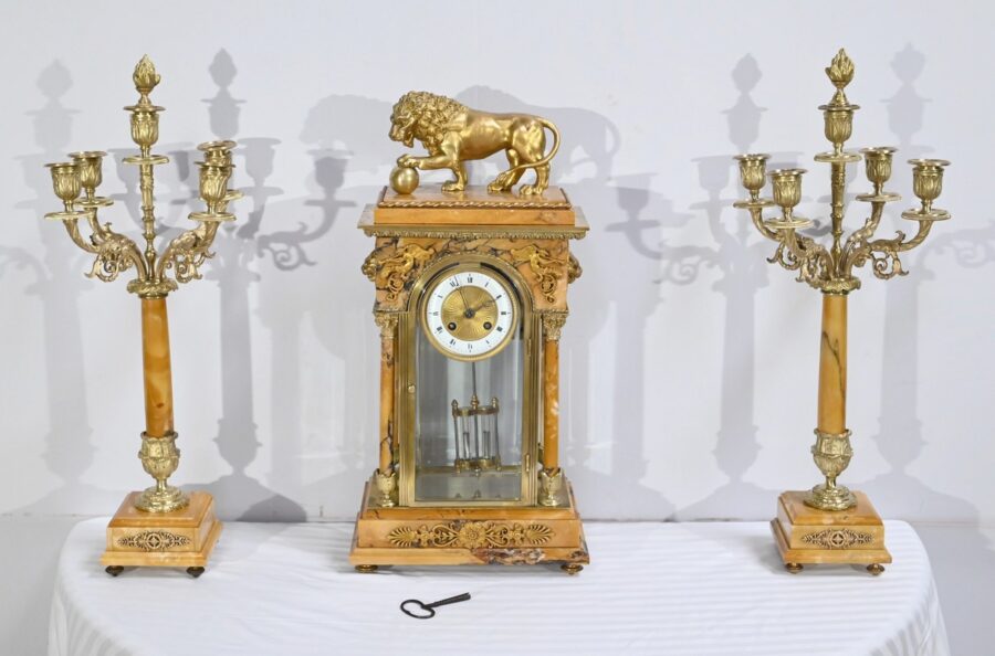 Importante Garniture de Cheminée en Marbre et Bronze, style Empire – 2ème Partie XIXe