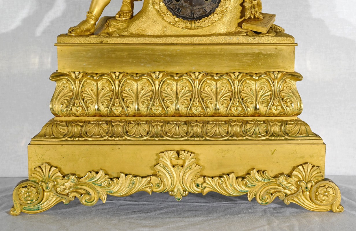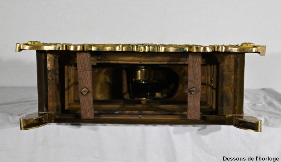 Importante pendule rectangulaire étagée, à mouvement à fil, en bronze doré, estampillée Philippe Simon Fabrication Rue Montmorency à Paris.