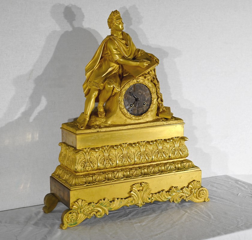 Cette importante horloge, richement ornementée, plaira notamment pour sa taille et son travail de qualité.