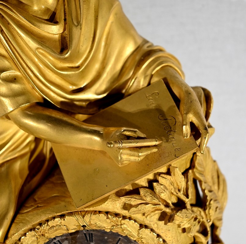 Elle figure un homme vêtu d’un drapé, chapeauté d’une couronne de laurier, rédigeant, sur sa tablette, un texte intitulé « L’Art Poétique ».