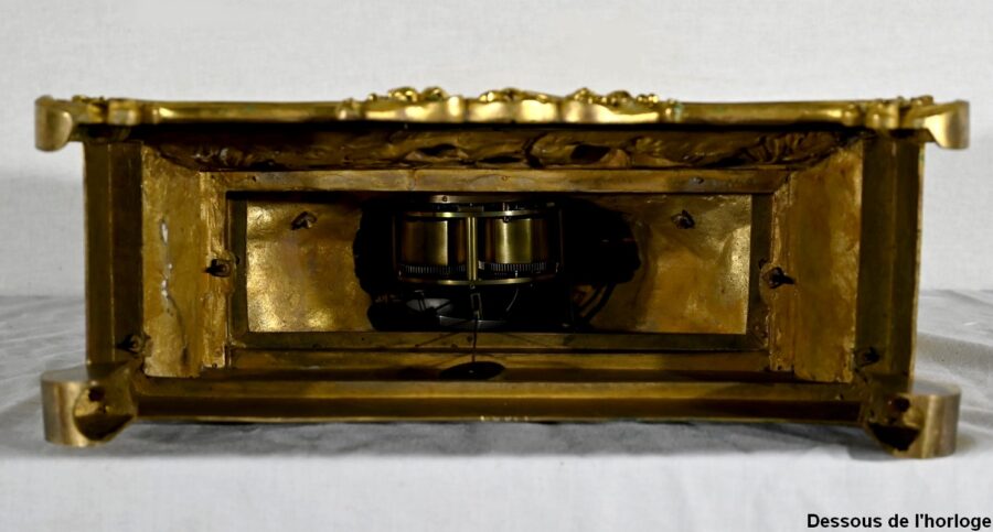 Certains admireront le caractère sacré de cet objet, tandis que d’autres retiendront surtout l’amour d’une mère à son enfant. Dans les deux cas, cette horloge plaira pour sa finesse de fabrication et son éclatante patine dorée.