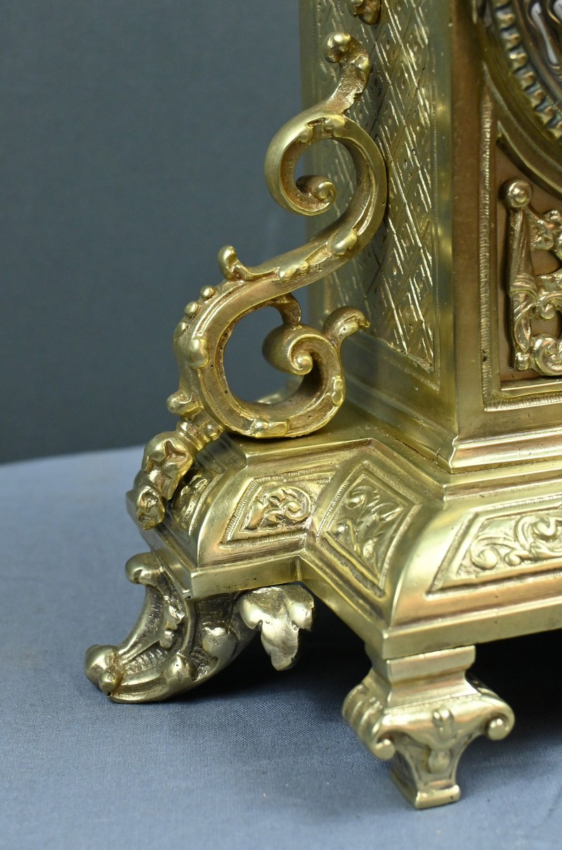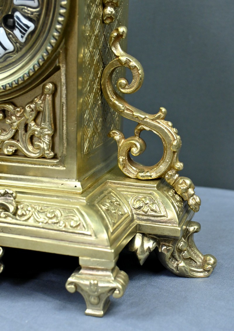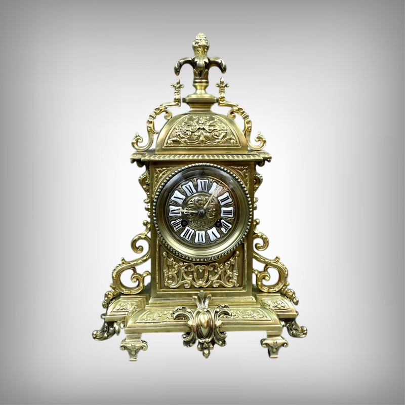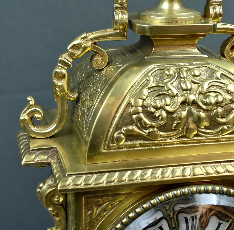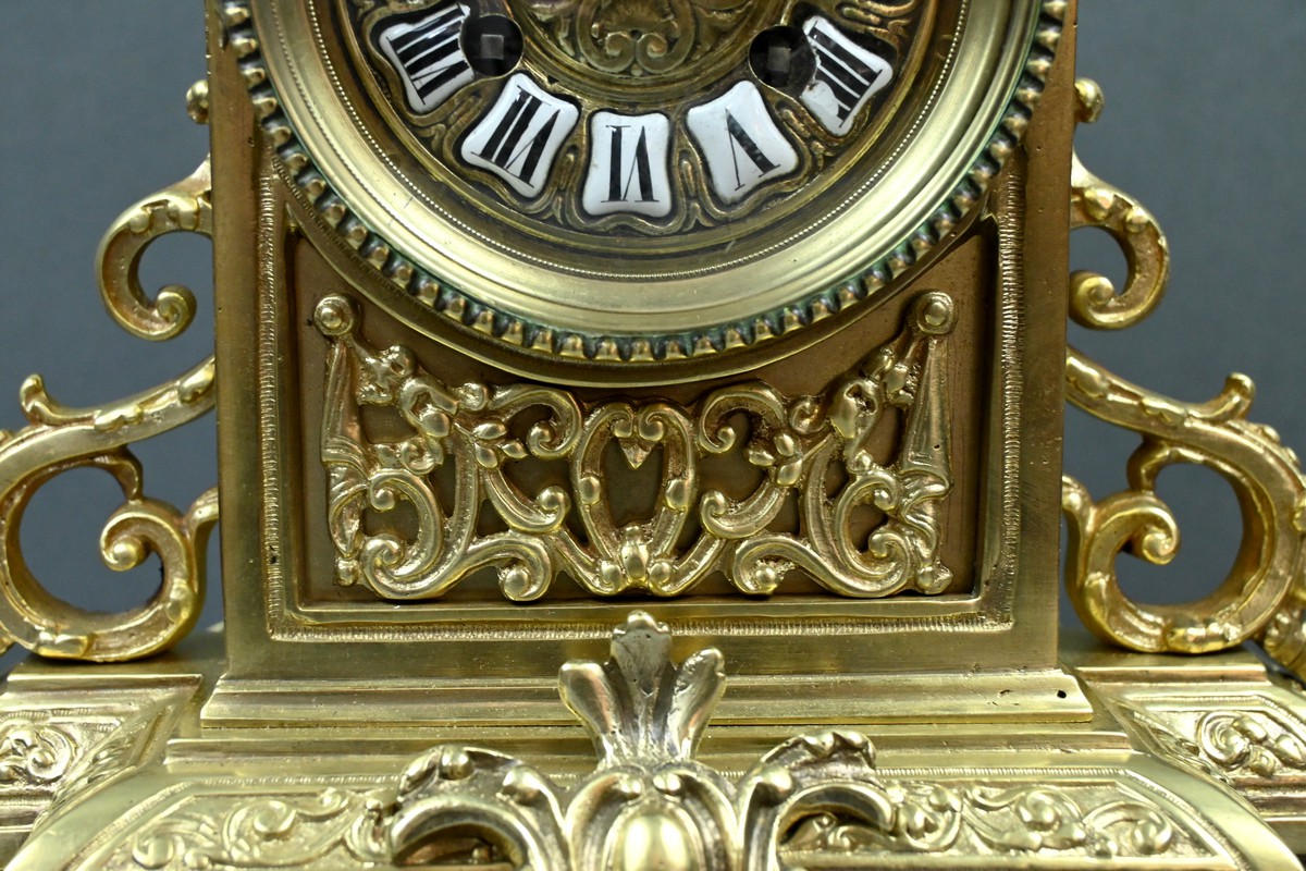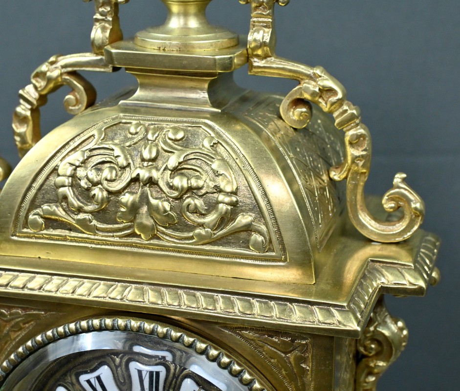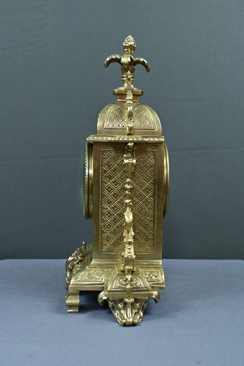 Le sommet est orné d’une pomme de pin naissant d’une fleur, symbole de prospérité et d’éternité, une allégorie subtile qui renforce le prestige de cette horloge.