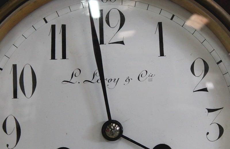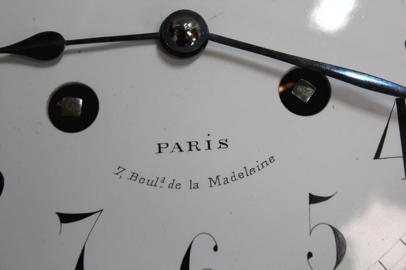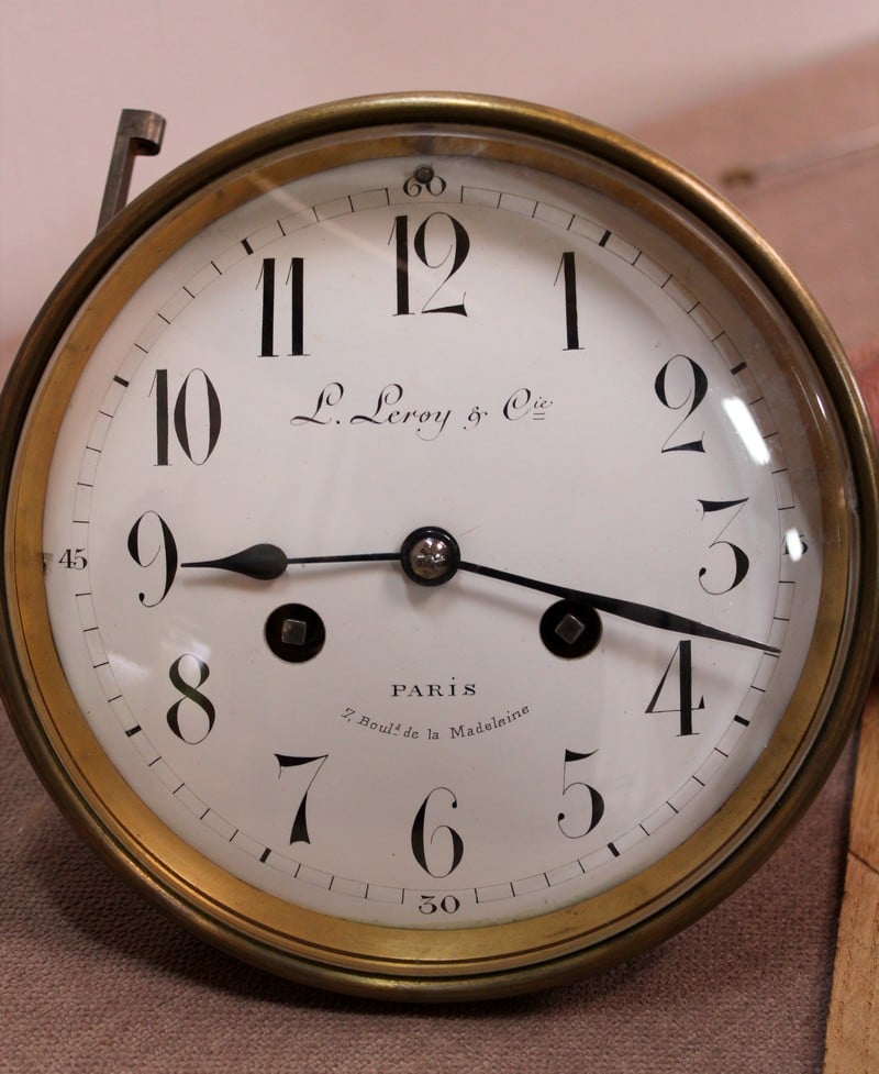 Le cadran de fond blanc est signé ‘L.Leroy & Cie’ et en bas, ‘7 Bd de la Madeleine à Paris’.