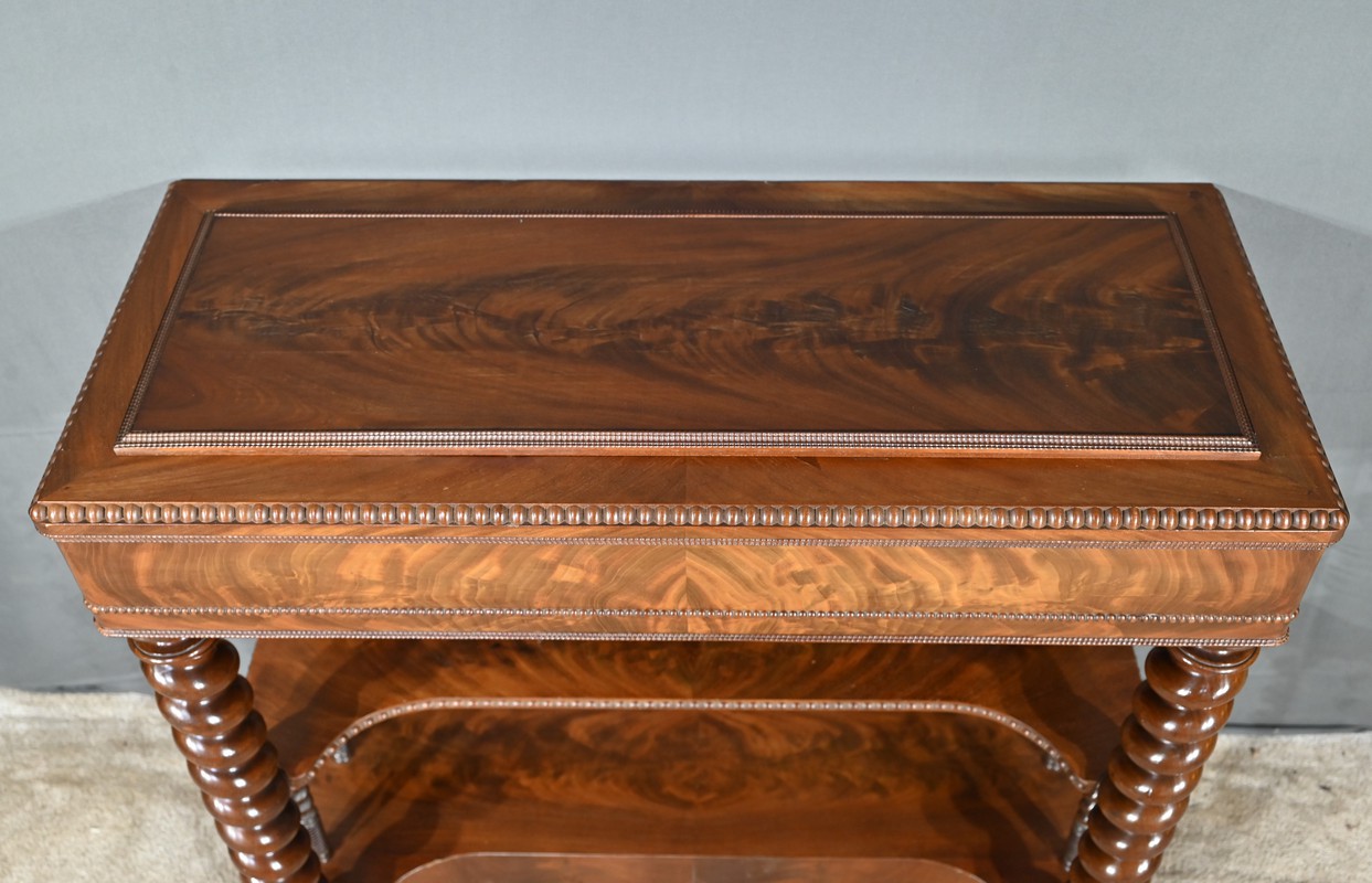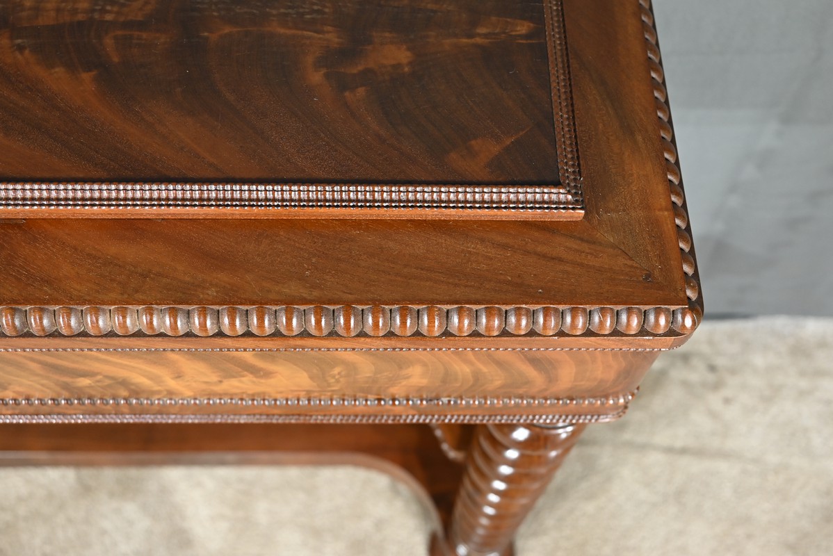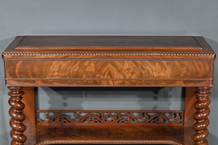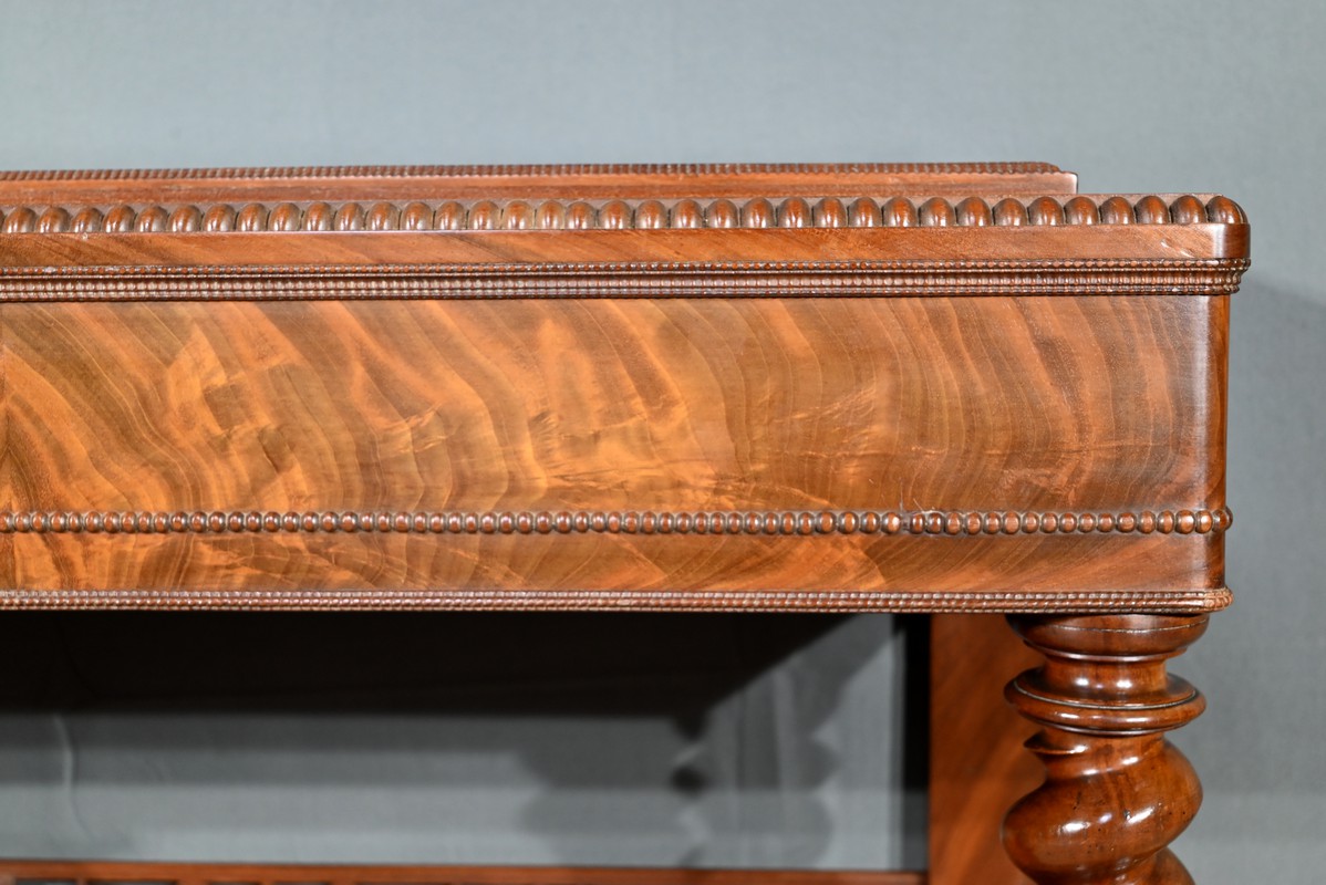 Cette jardinière en ronce d’acajou présente des lignes classiques et robustes, typiques du style restauration