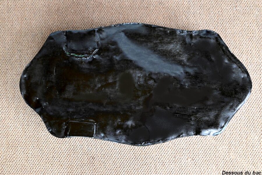 La partie basse présente une tablette de même forme et d’esprit que le reste du meuble.