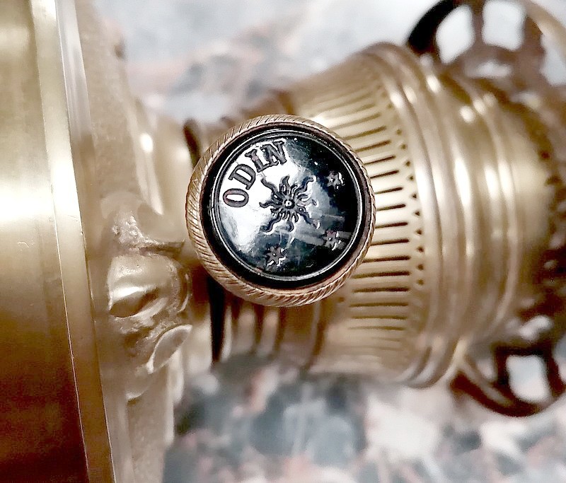 Composée d’un Bec de Marque Odin, dont le logotype est présent sur la Molette permettant de monter la Mèche, cette Grande Lampe possède un large Réservoir.