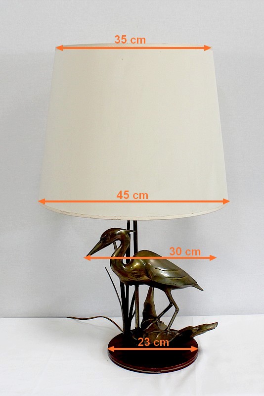 Cette Grande lampe est munie d’un Abat-jour de Couleur Crème mettant en Valeur l’Oiseau majestueux.