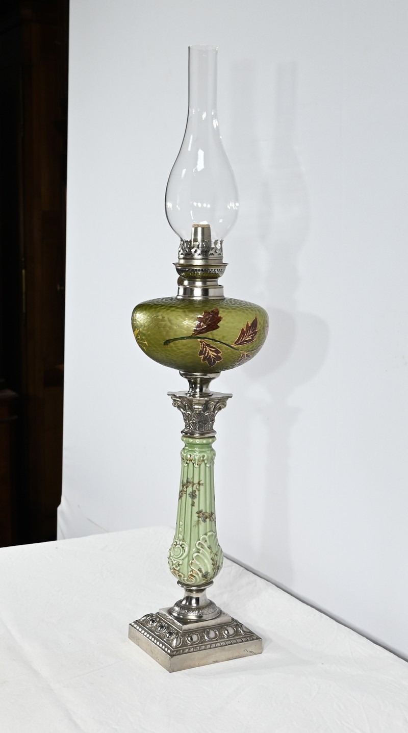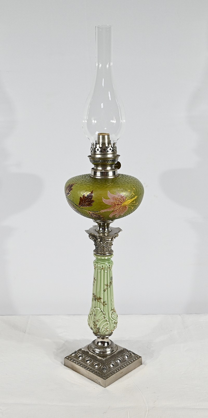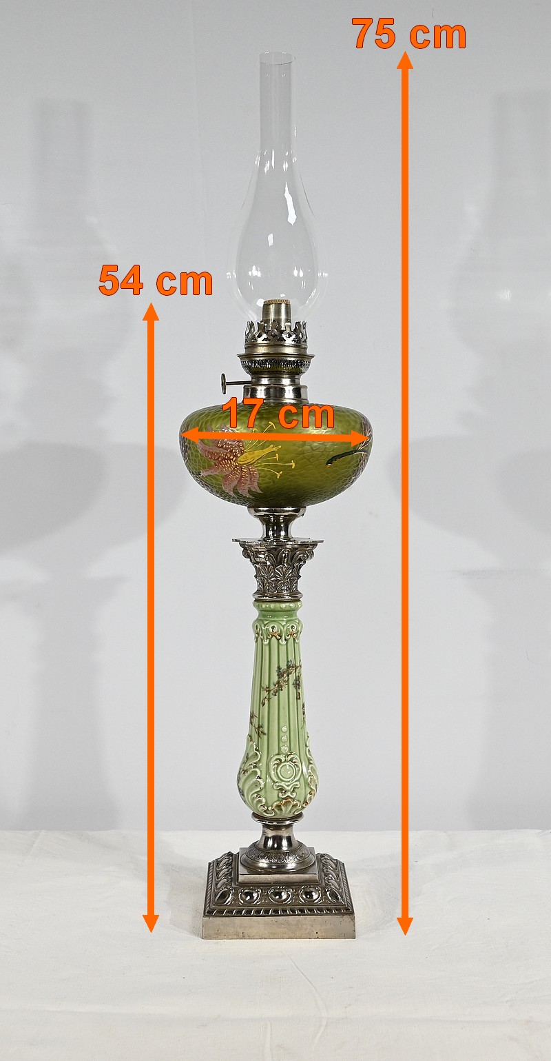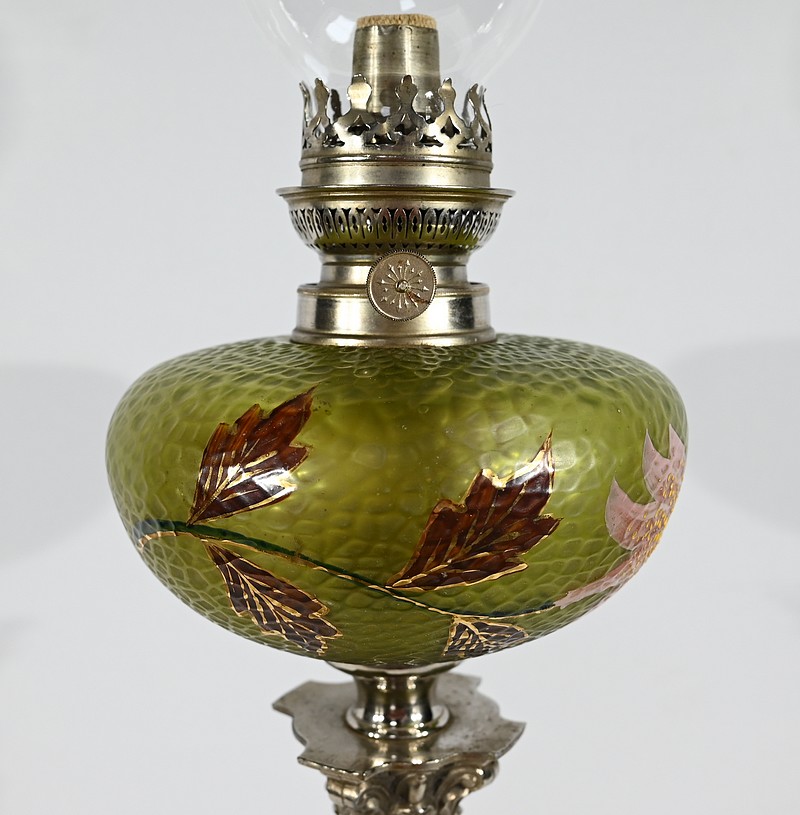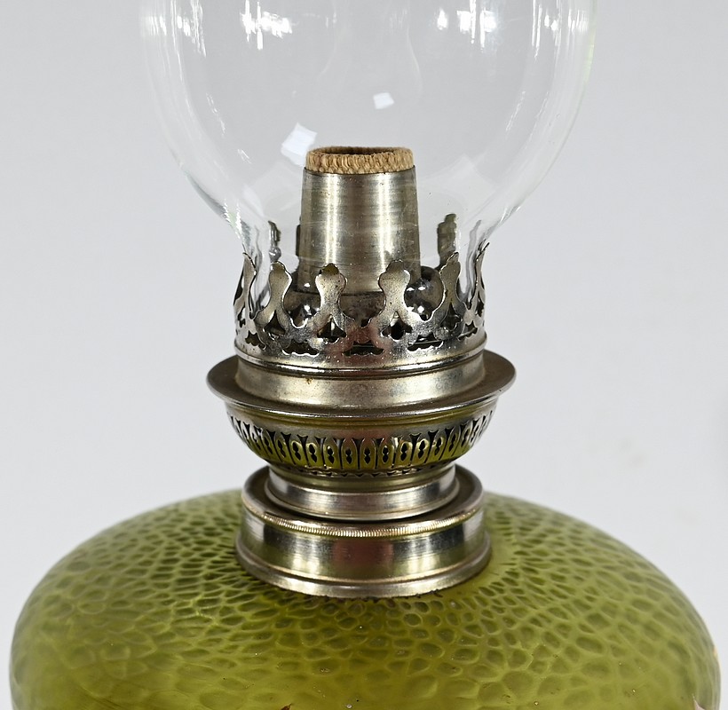 Magnifique Lampe à Pétrole d’époque Art Nouveau, d’origine, en parfait état de fonctionnement.