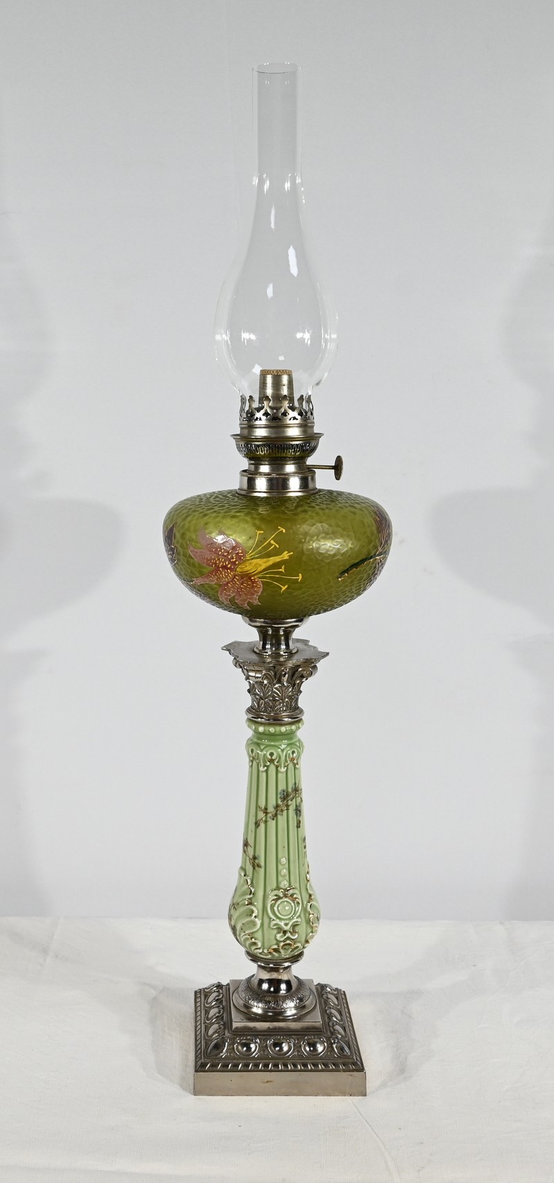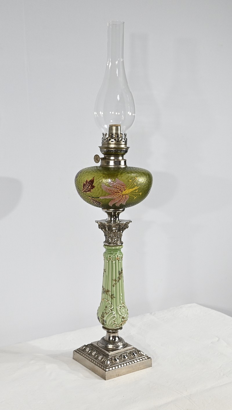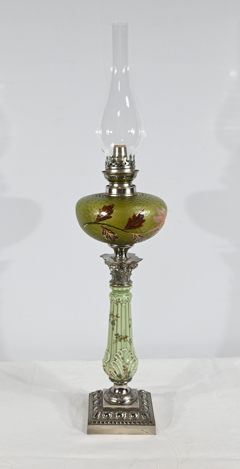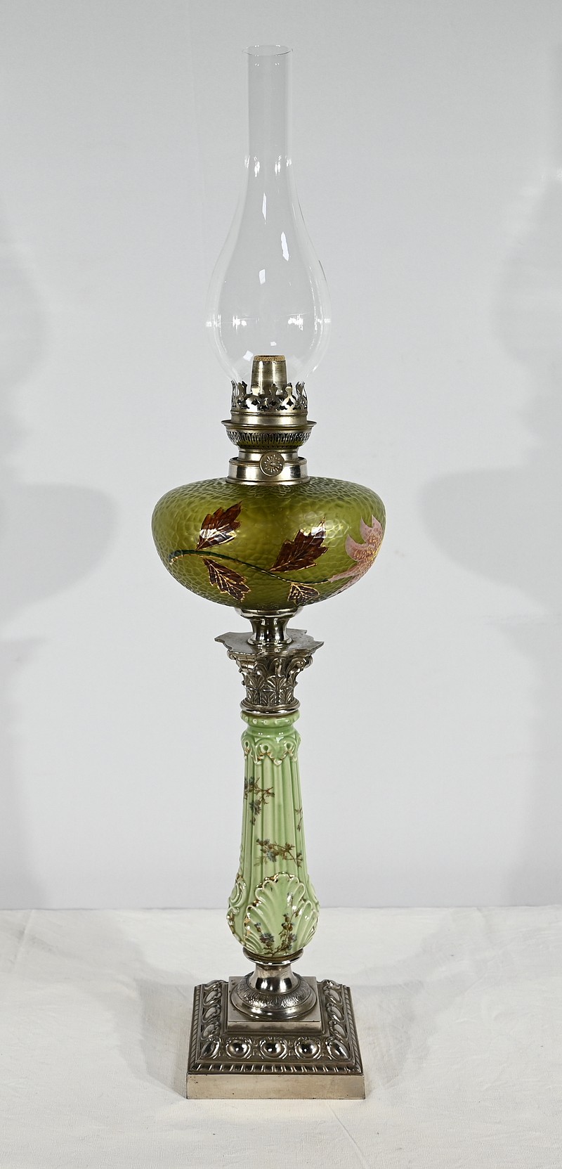 Magnifique Lampe à Pétrole d’époque Art Nouveau, d’origine, en parfait état de fonctionnement.