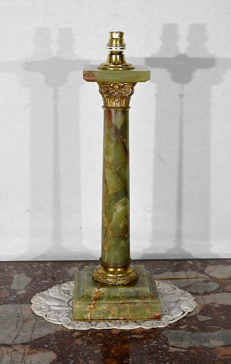Lampe à colonne en Onyx vert, goût Empire – Début XXe