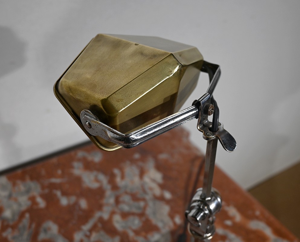 Inspiré du modèle Pirouett’ de Jean Chavanis, cette lampe de travail, dit de notaire, servait à l’origine pour l’éclairage des machines à écrire et des machines comptables, au début du XXe siècle.