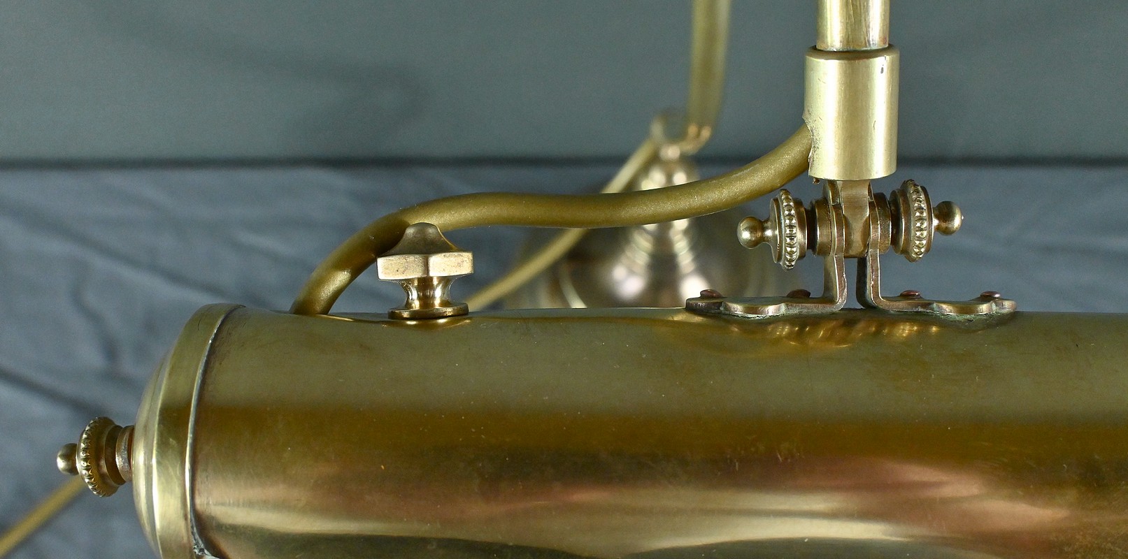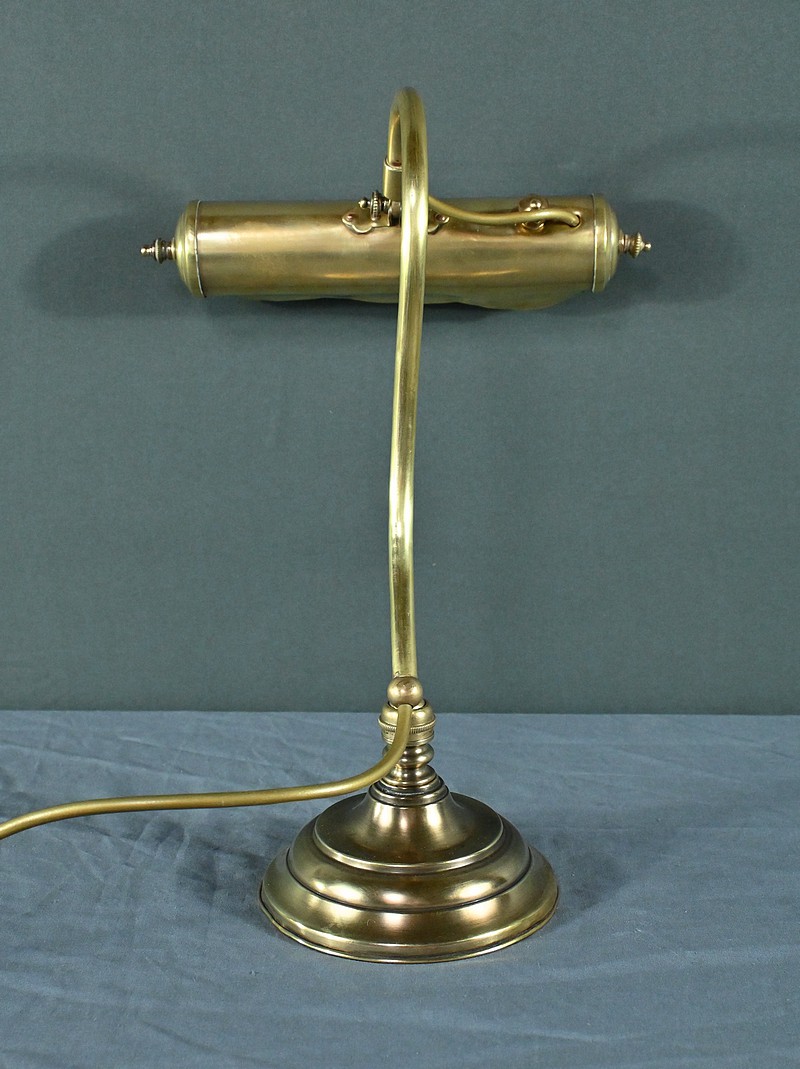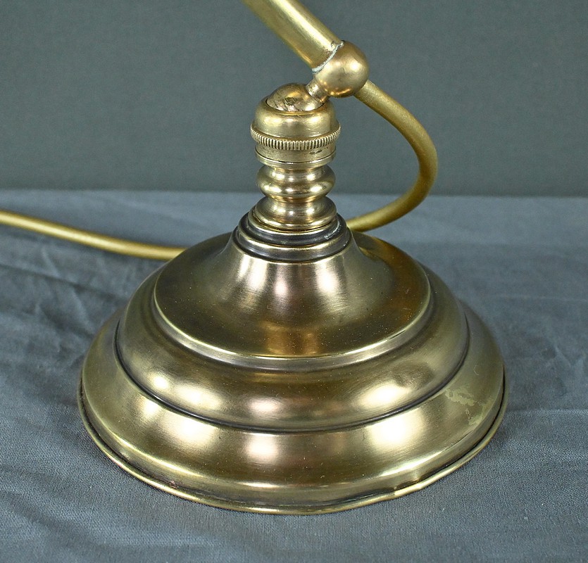 Cette lampe de notaire en laiton massif des années 1930 dégage un charme vintage irrésistible, fruit d’un savoir-faire artisanal et d’une esthétique soignée. Ses lignes sobres et élégantes évoquent l’ambiance studieuse des anciens cabinets juridiques, tout en s’accordant harmonieusement aux intérieurs modernes. Son bras articulé et sa tête pivotante offrent une grande liberté de mouvement : vous pouvez orienter le faisceau lumineux exactement là où vous en avez besoin. Le socle lourd garantit une stabilité parfaite, même lors des repositionnements fréquents. Le cylindre légèrement voilé témoigne de l’usure du temps et confère à cet exemplaire une personnalité unique. Cette petite irrégularité prouve l’authenticité de l’objet et transforme un simple luminaire en véritable pièce de collection. Installée sur un bureau, une table de chevet ou une console, cette lampe devient un point d’ancrage visuel qui sublime son environnement.