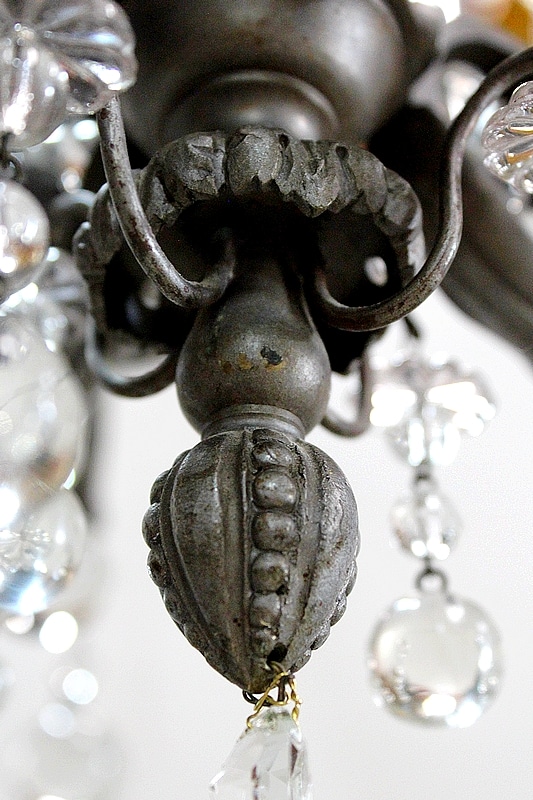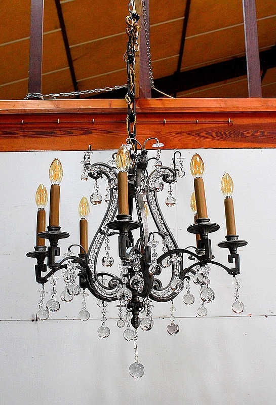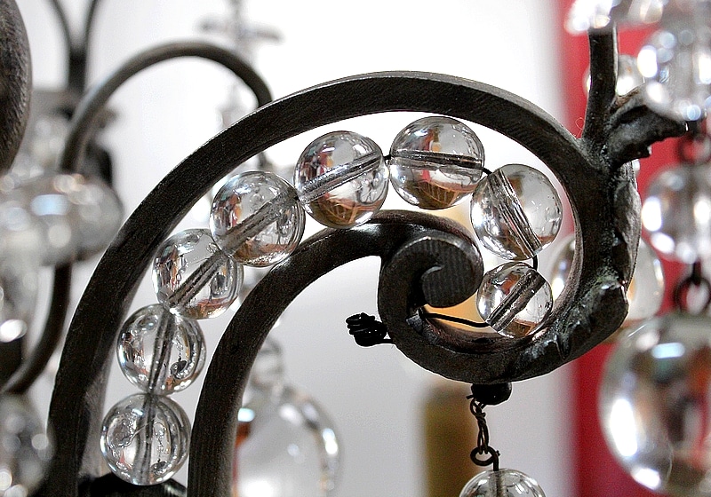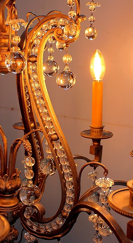 Ce Luminaire est enjolivé de nombreuses Pampilles de Cristal, taillées en Pommes et Boules.