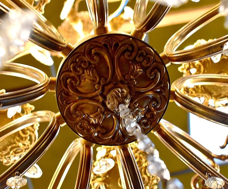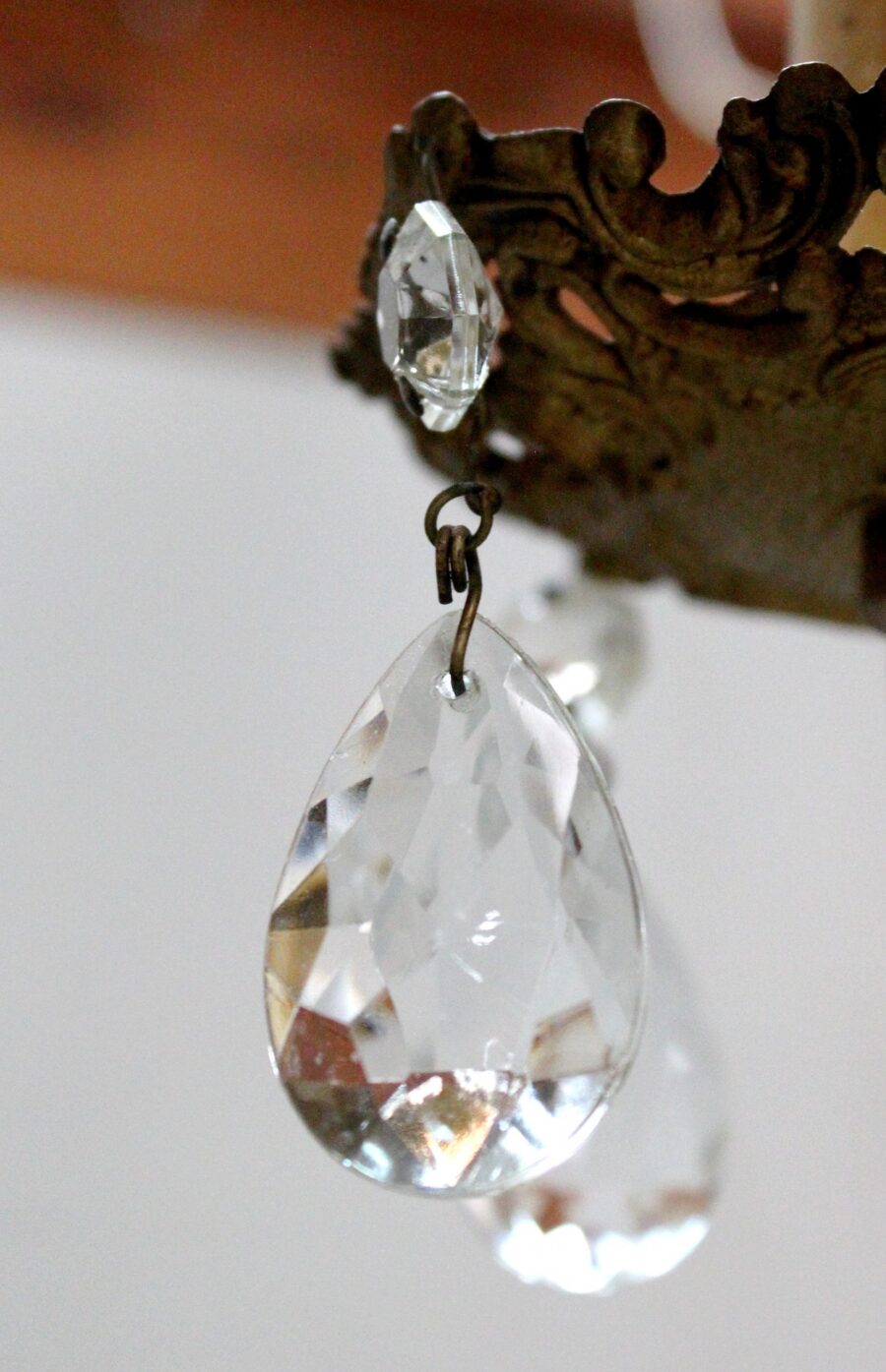 Ce Luminaire est agrémenté de nombreuses Pampilles en suspension, taillées en Plaquettes, en Poires, ou encore en Boules à facettes.