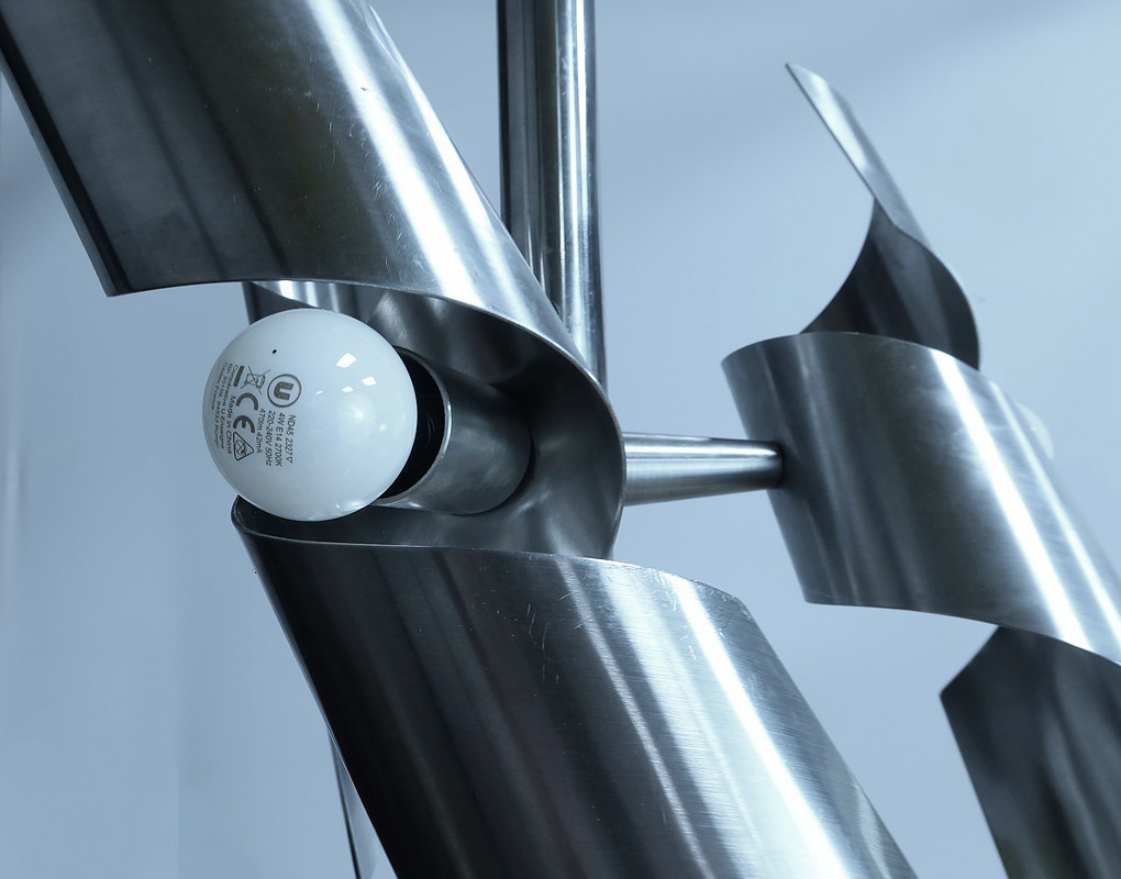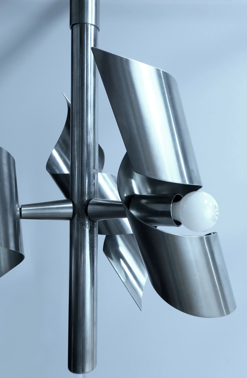 Ce magnifique lustre en inox, typique du style Space Age des années 60, est une véritable œuvre visionnaire.