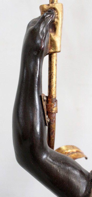 Statue Porte-Torchère représentant un Nubien en Bois Sculpté Polychrome sur son socle, dans le goût Vénitien.