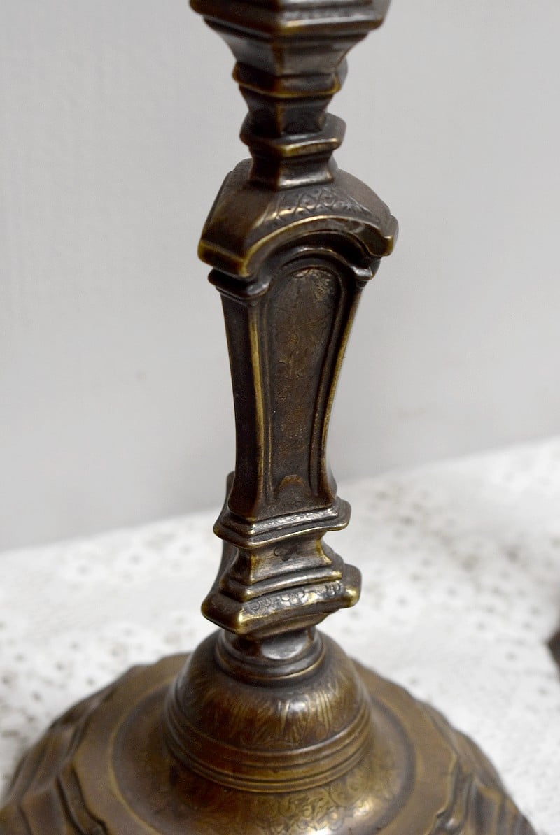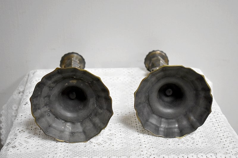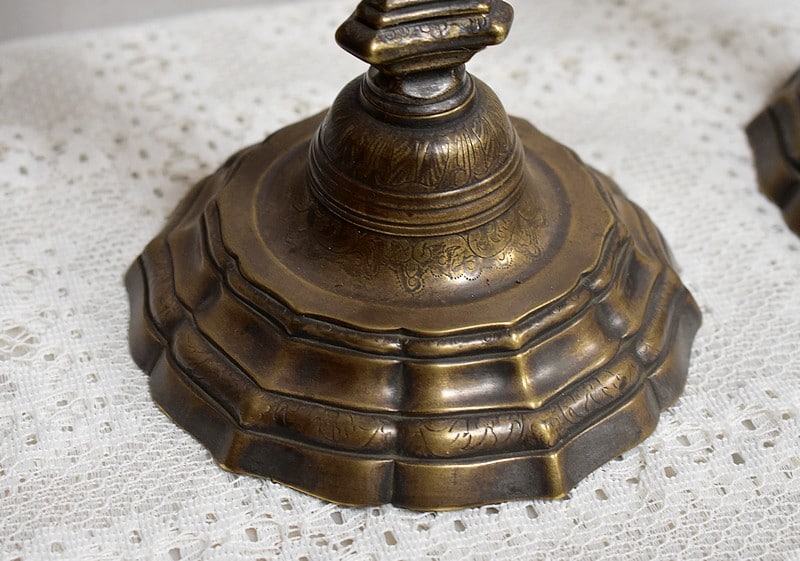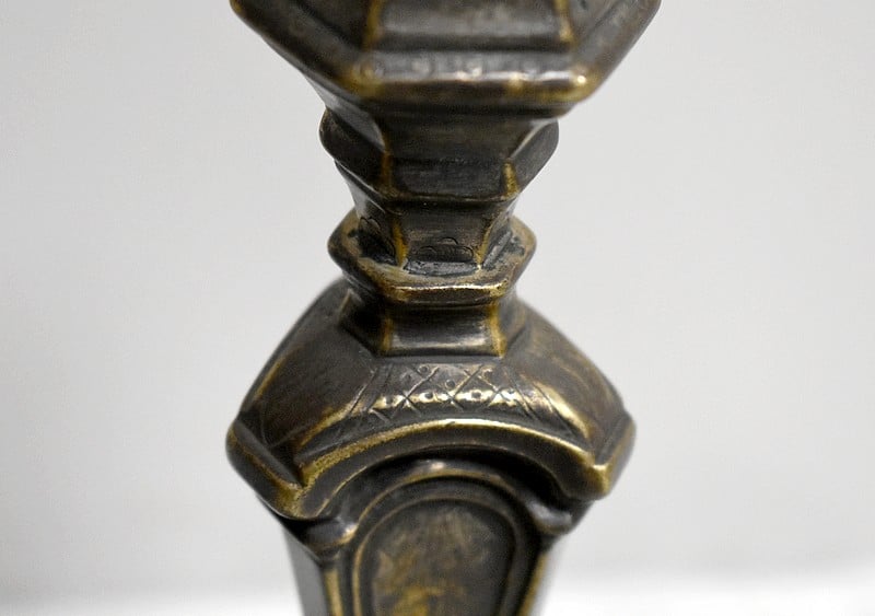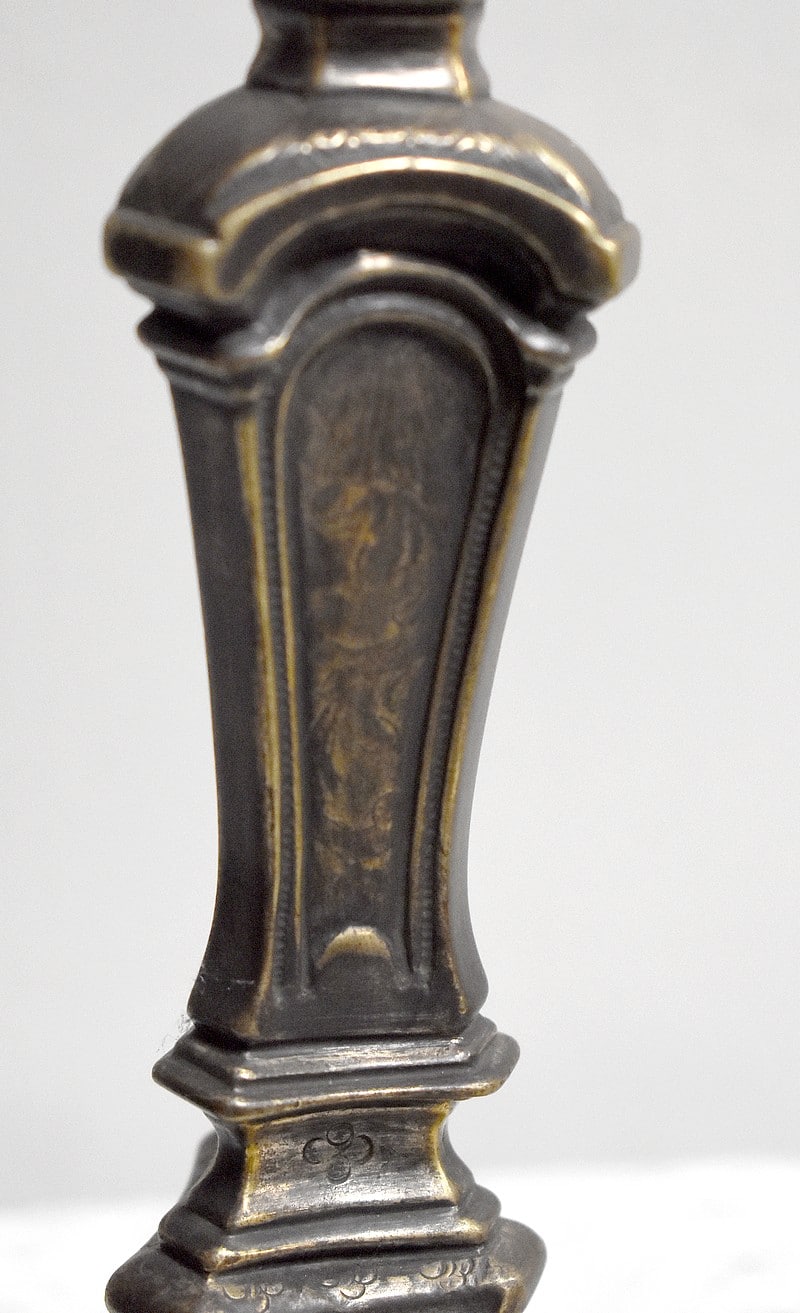 Ils reposent sur un pied à décors de dauphins terminé en socle carré orné de motifs floraux et d’autres dauphins.