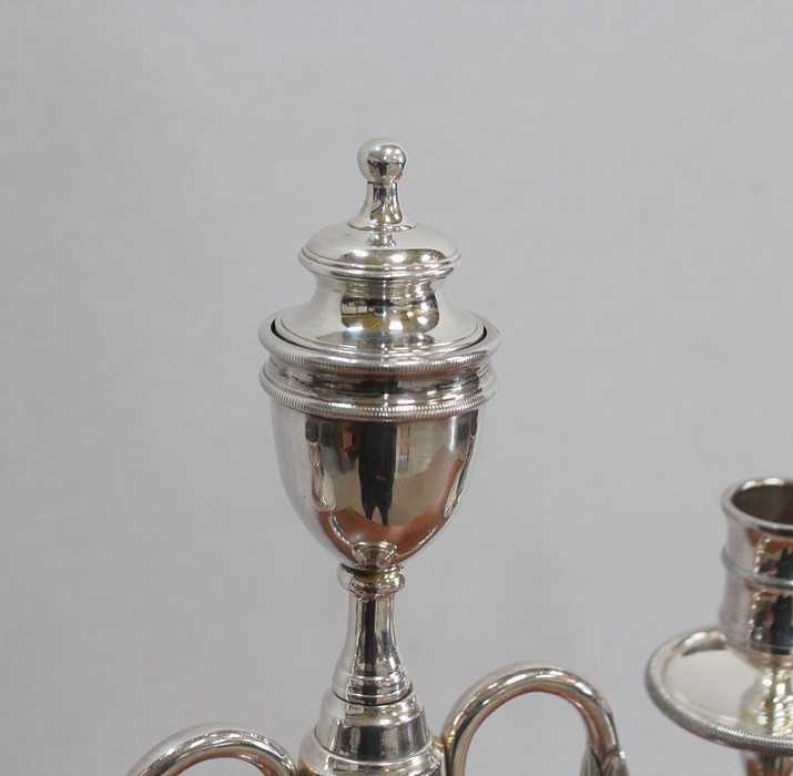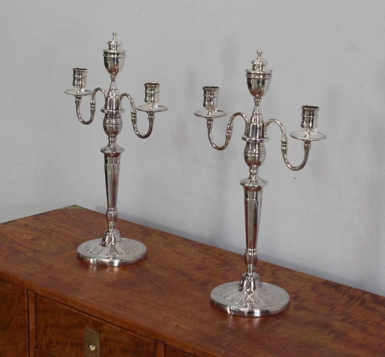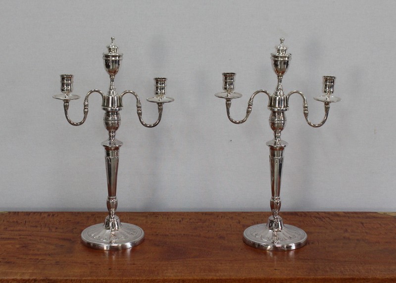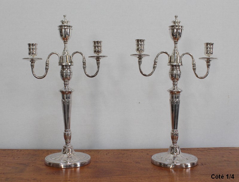 Paire de Candélabres à deux bras, en bronze argenté accompagné chacun de chapeaux.