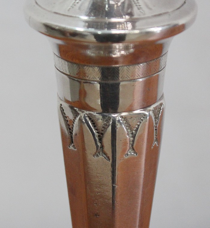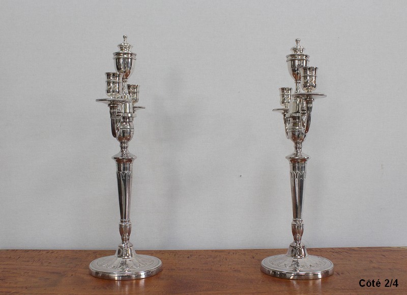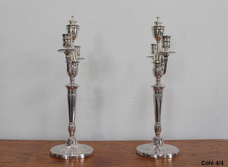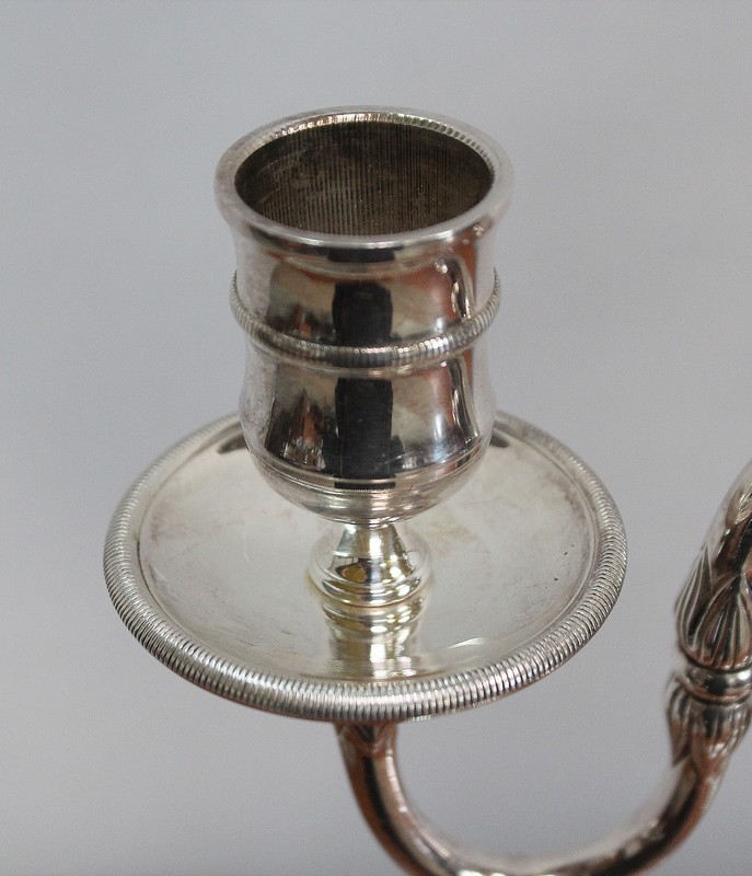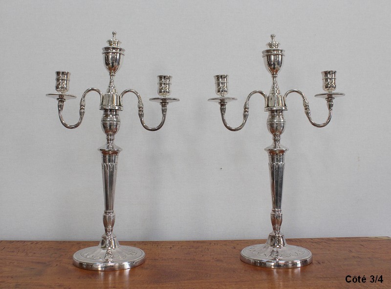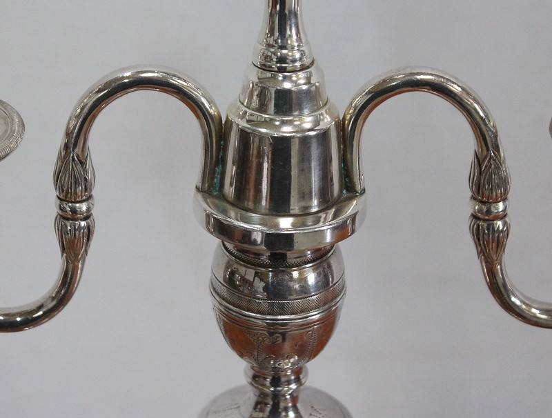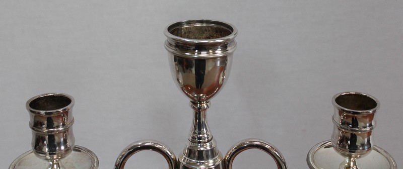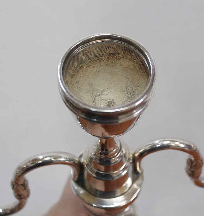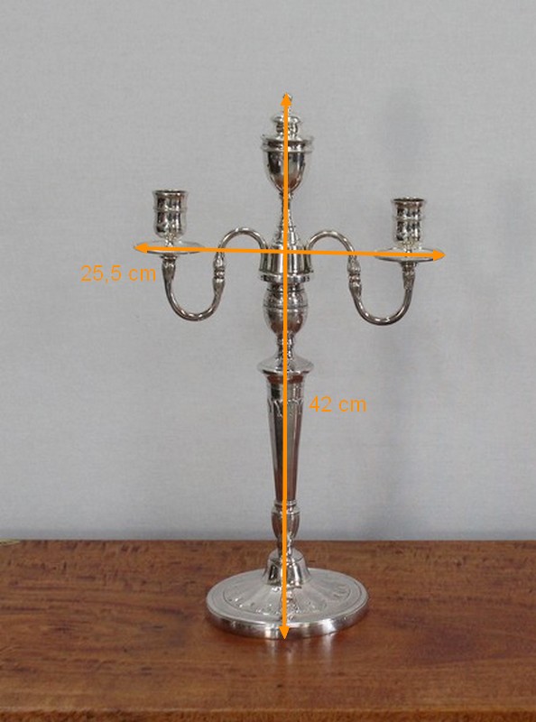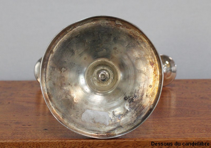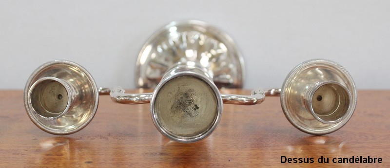 Ces chandeliers sont chacun équipés de trois douilles pour placer les bougies, ceux au bout des bras ont en plus une bobèche, élément permettant de retenir la cire fondue.