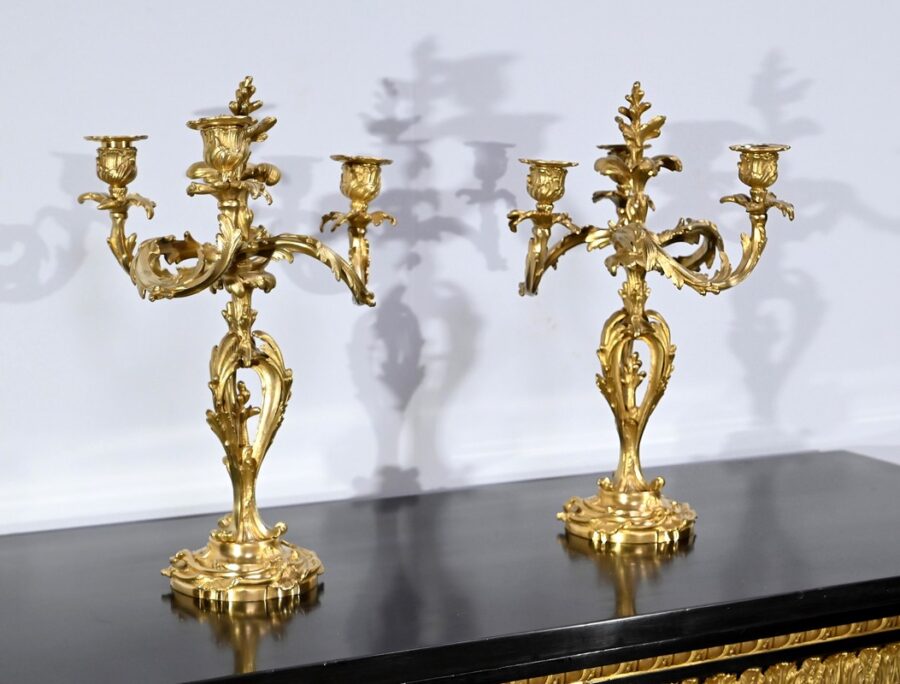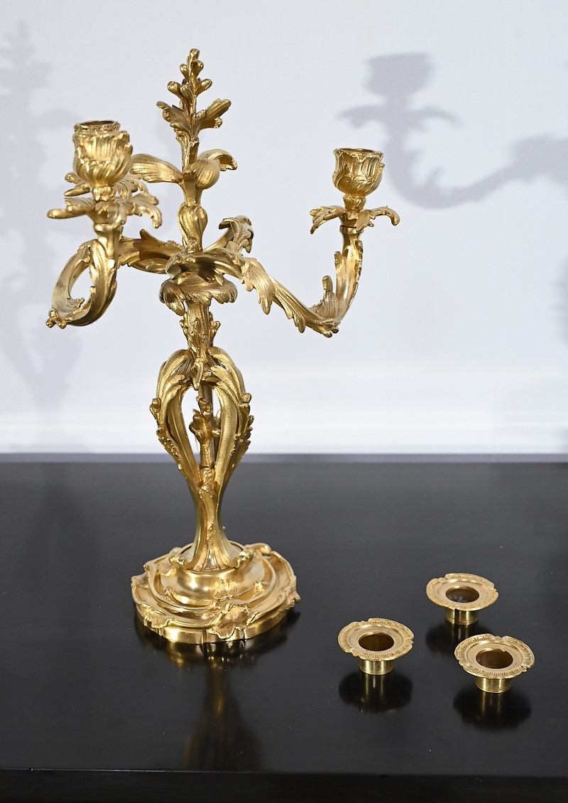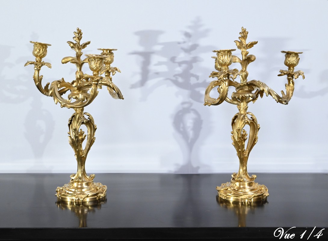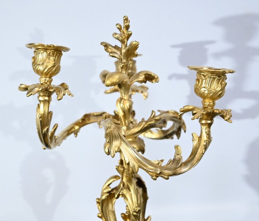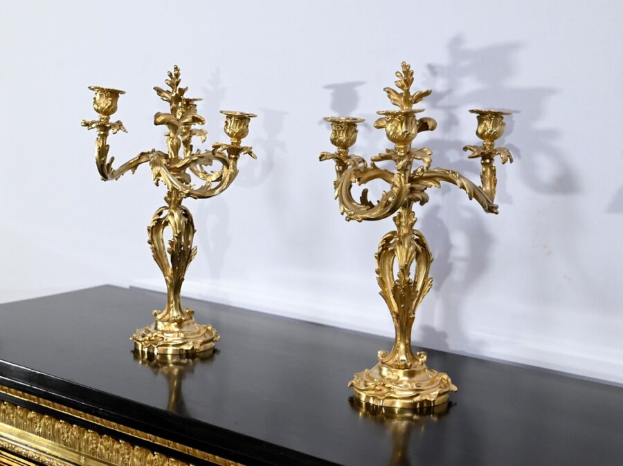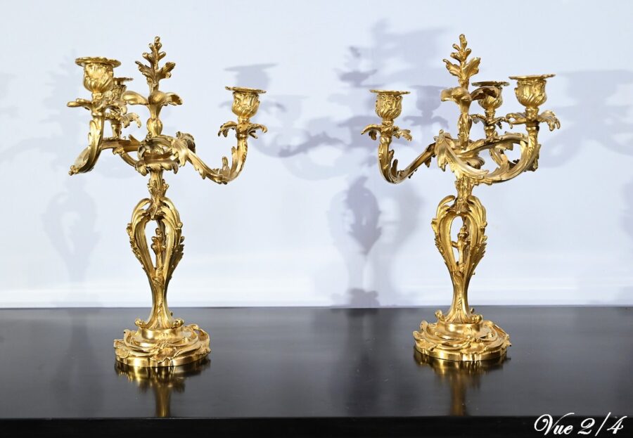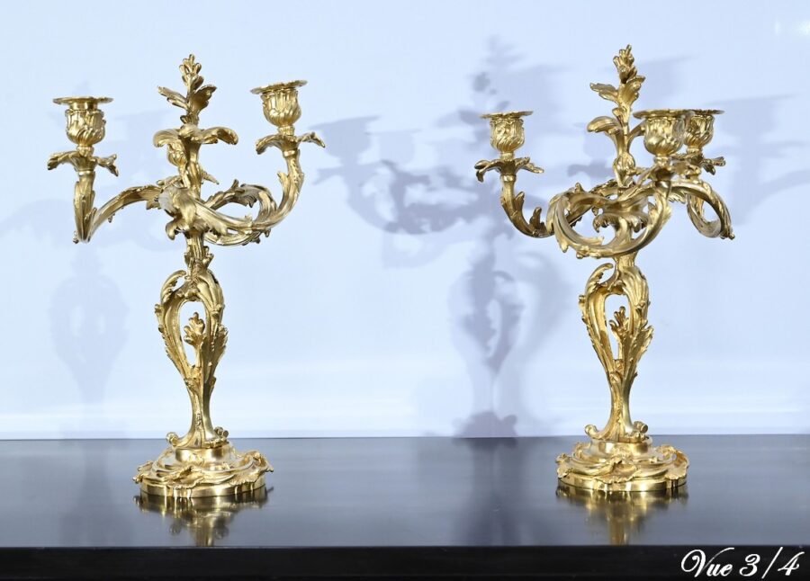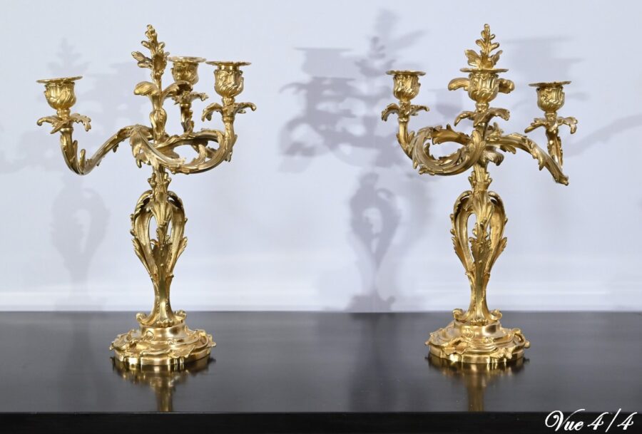 Paire de Candélabres en Bronze Doré, style Louis XV – Fin XIXe