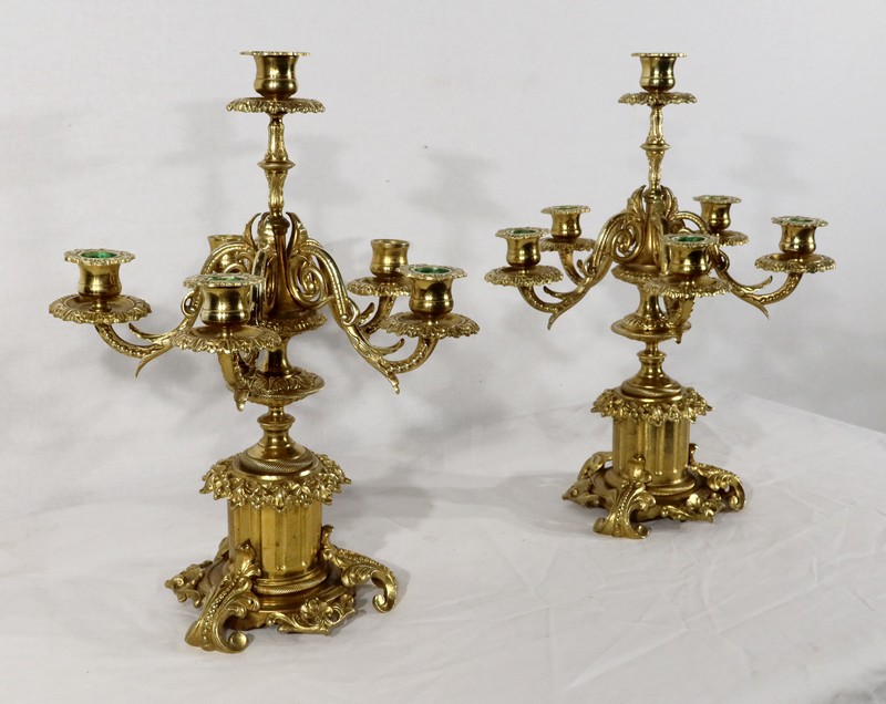 Élégante paire de Candélabres à 6 lumières en Bronze doré, datant de la fin du XIXe siècle.
