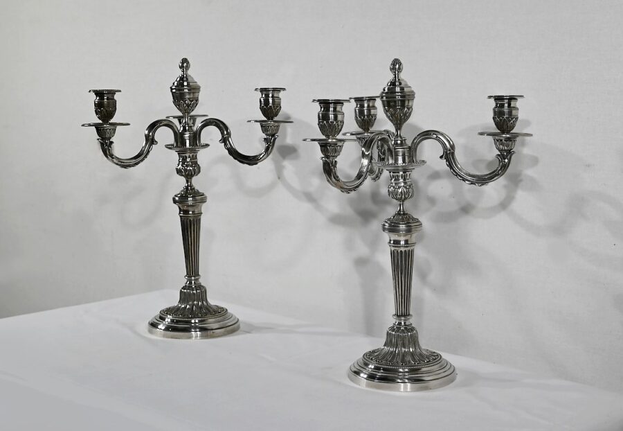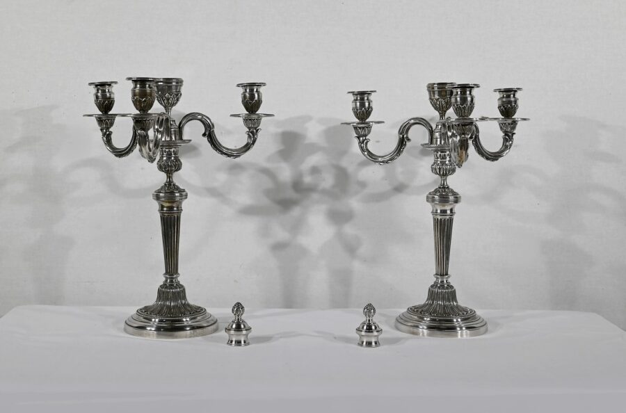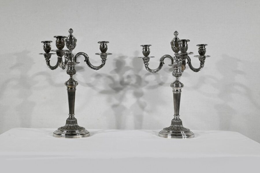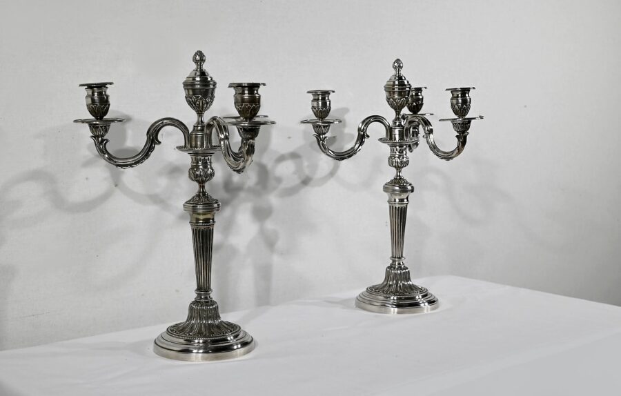 Paire de Chandeliers en Bronze Argenté – Fin XIXe
