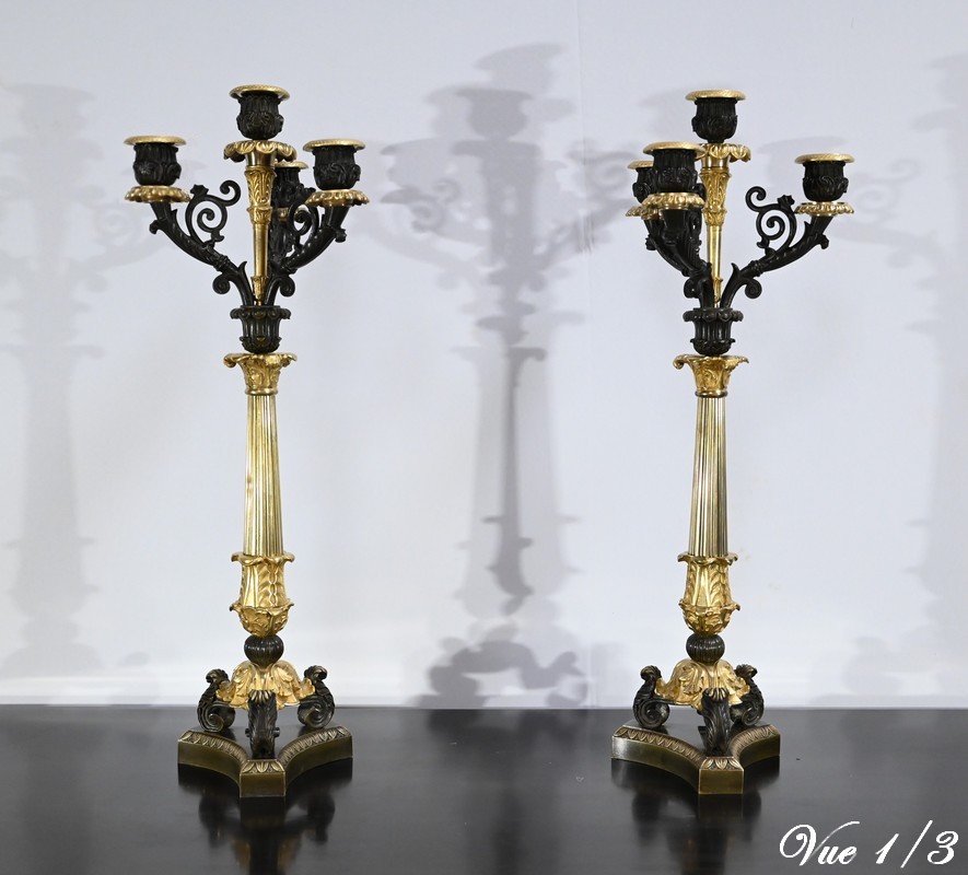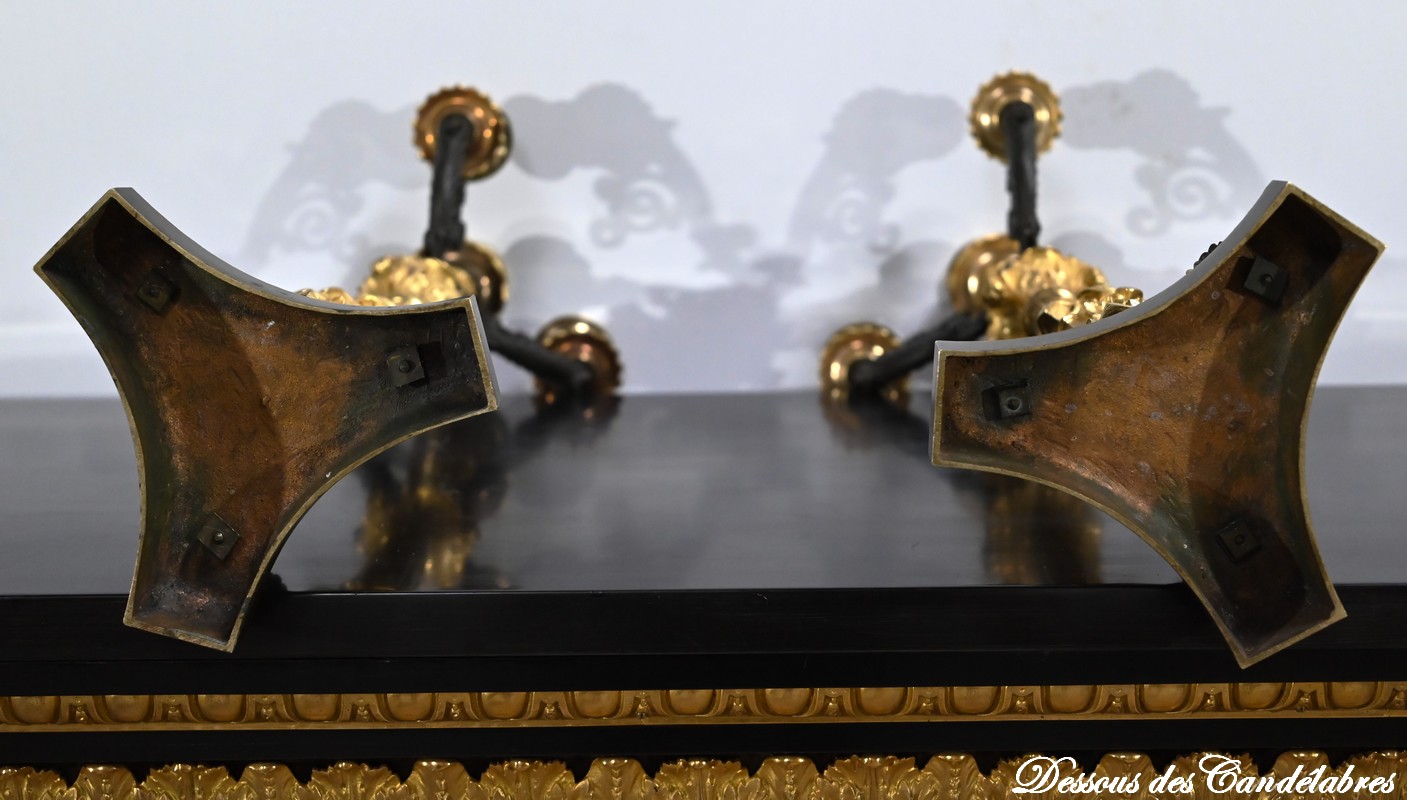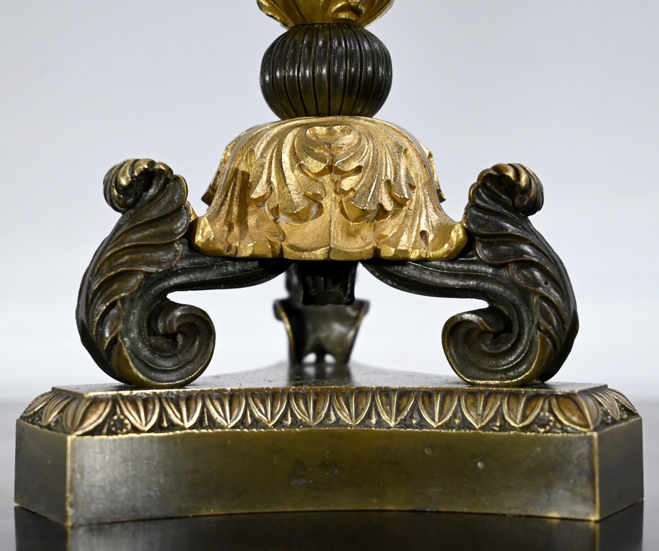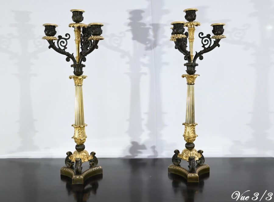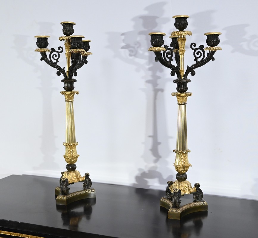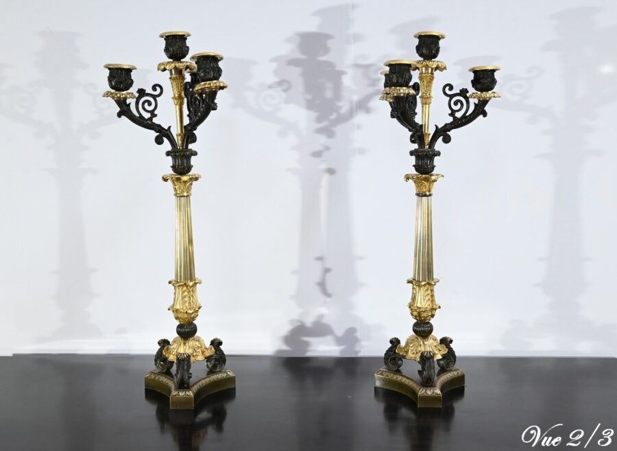 Paire de Chandeliers en Bronze à Double Patine, époque Restauration – Début XIXe