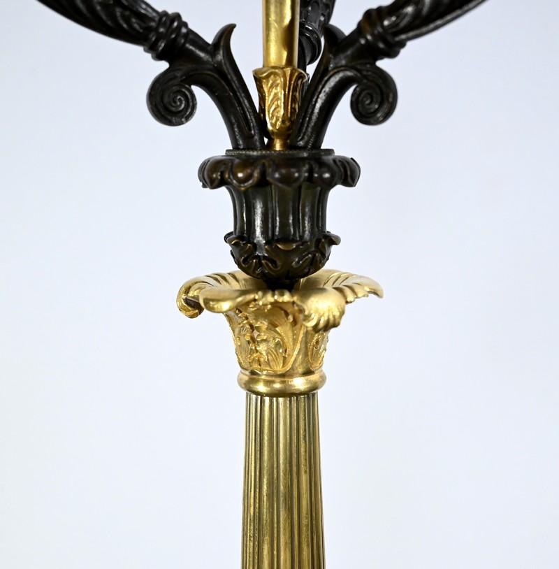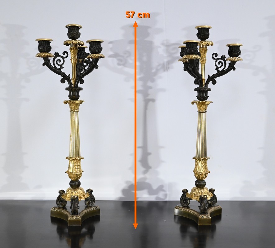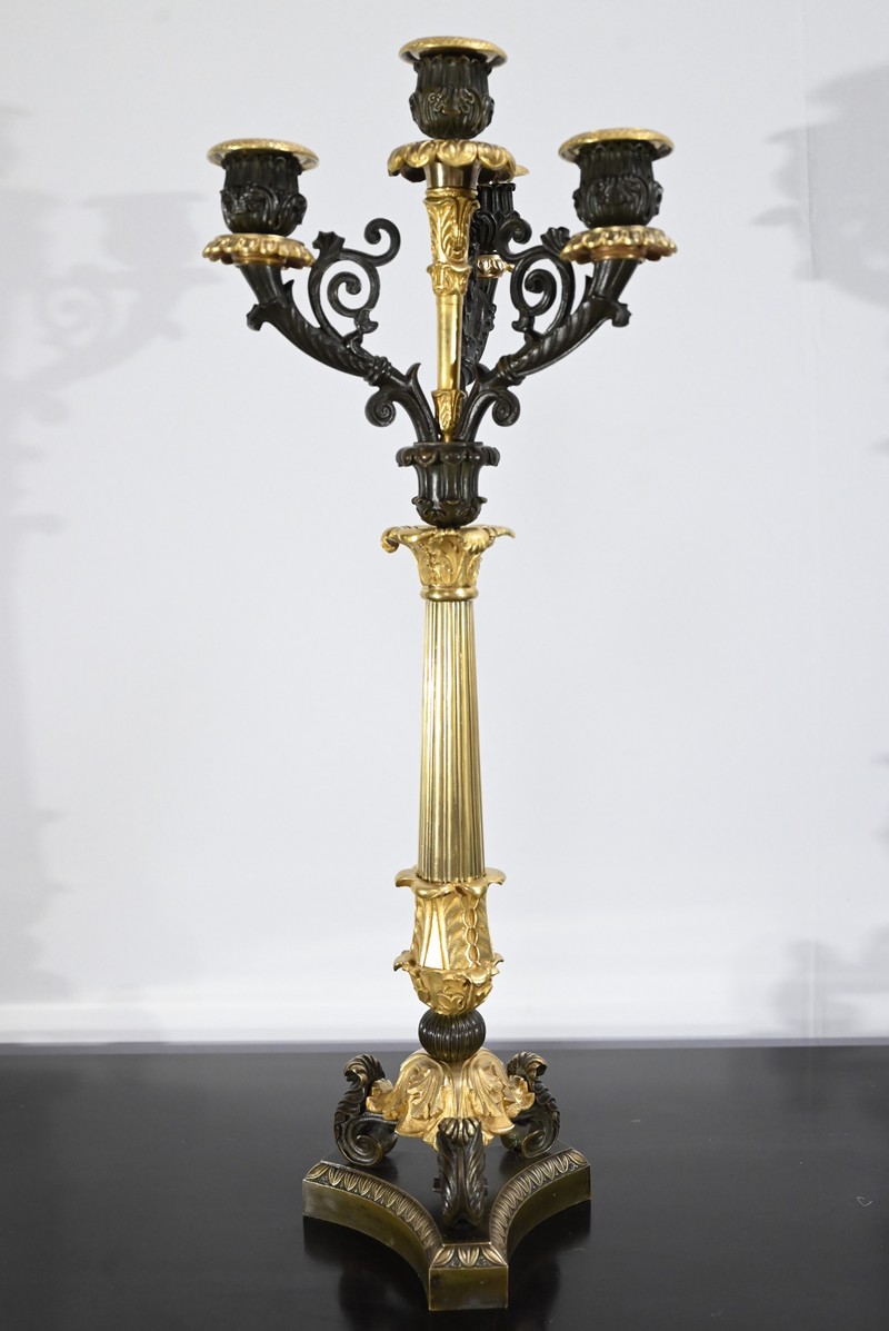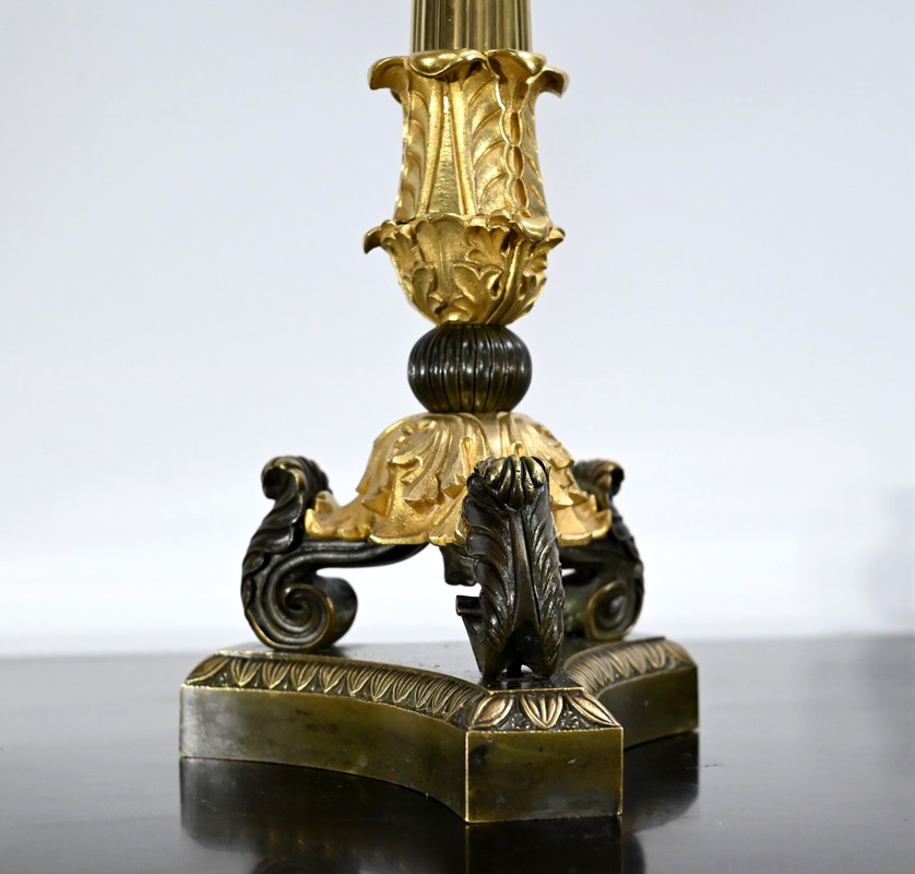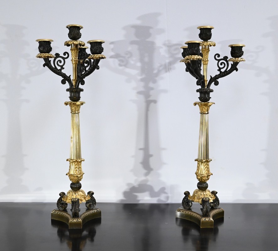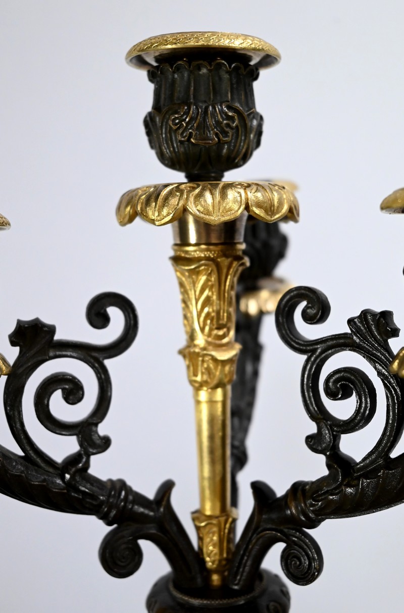 Paire de Chandeliers en Bronze à Double Patine, époque Restauration – Début XIXe