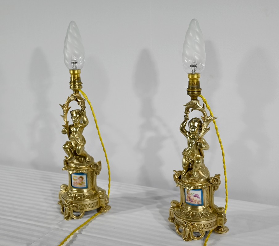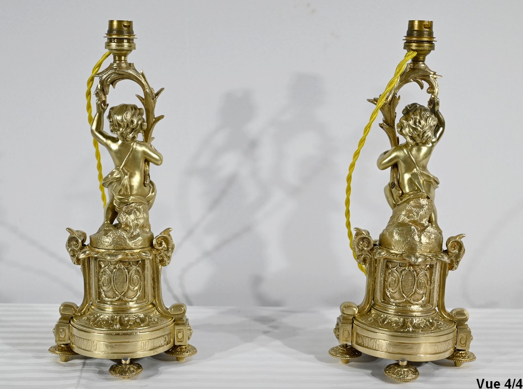 Paire de flambeaux en bronze doré d’époque Napoléon III datant du milieu du XIXe siècle.