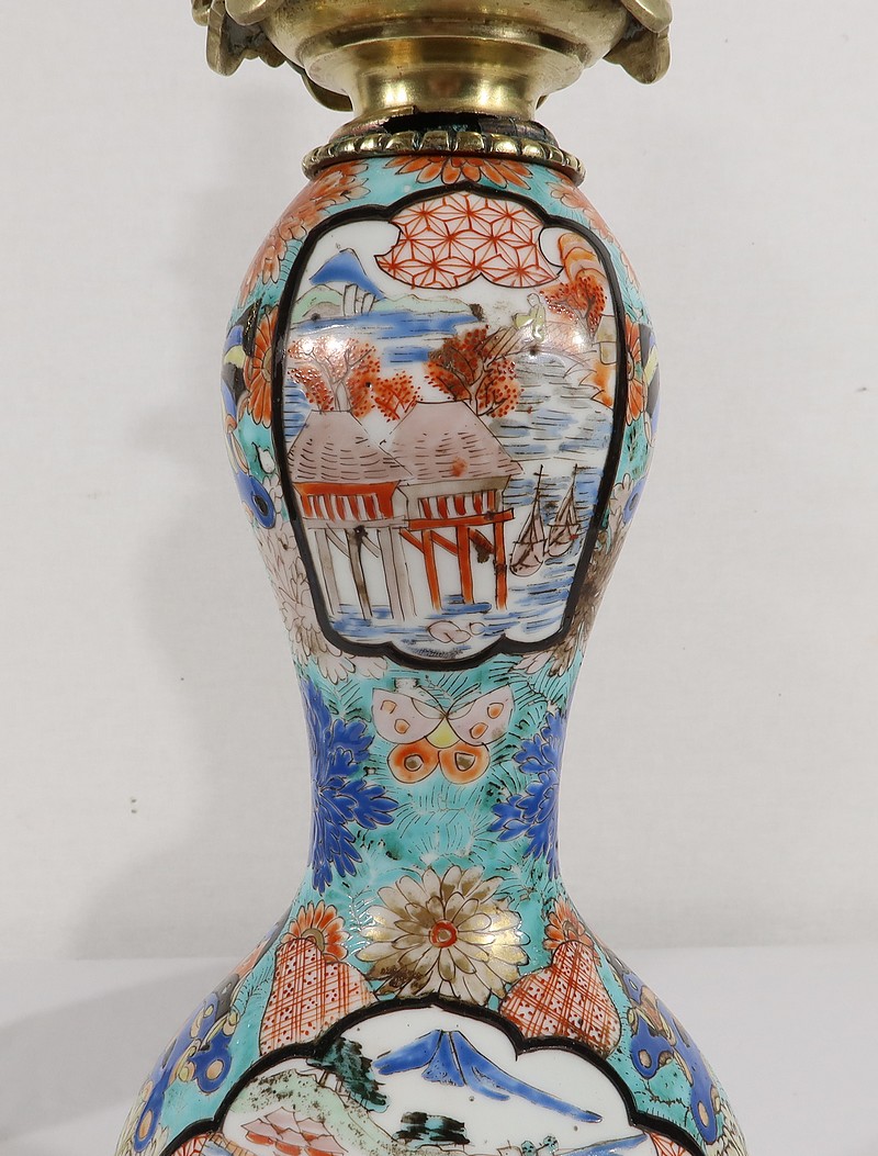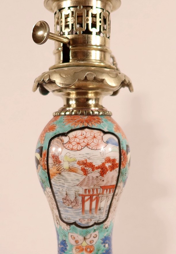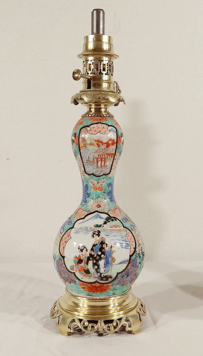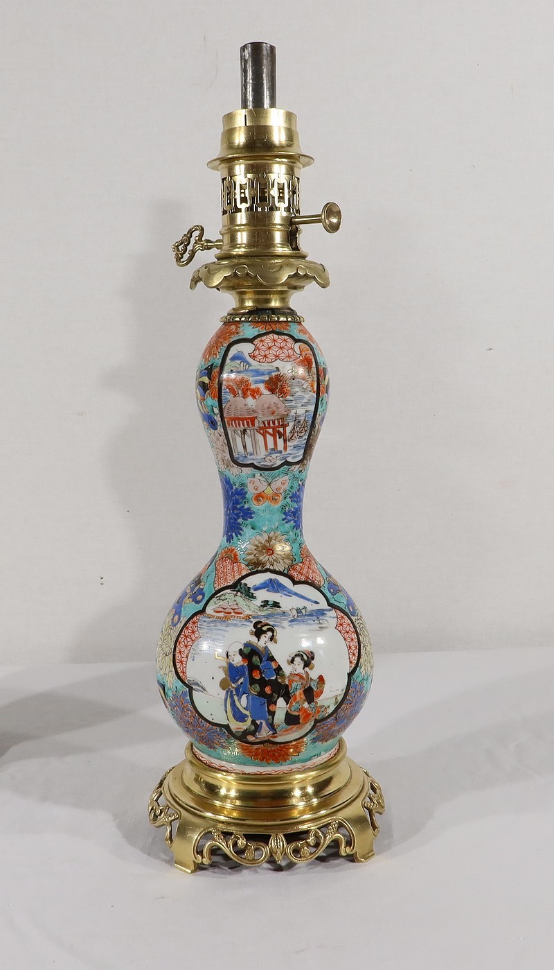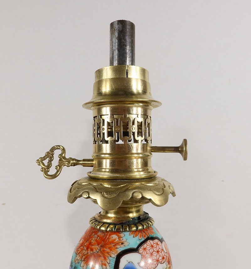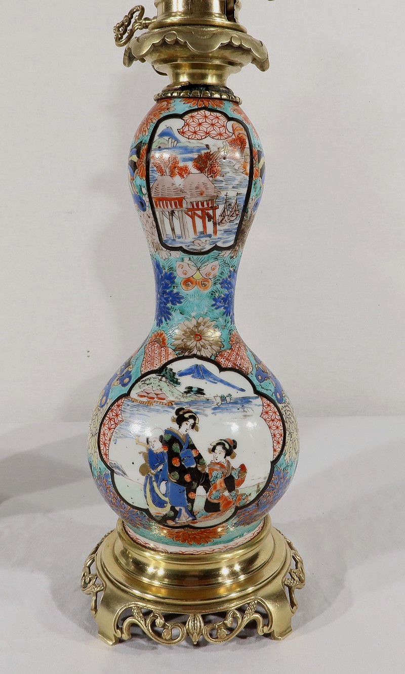 Belles lampes à pétrole datant de l’époque Napoléon III, réalisées en porcelaine japonaise et agrémentées de bronze.