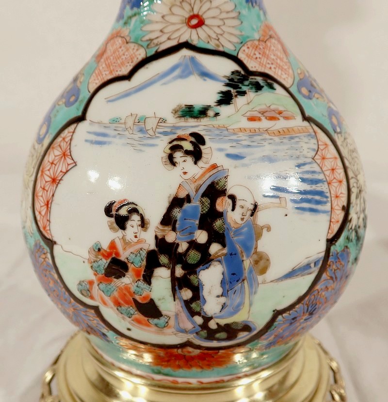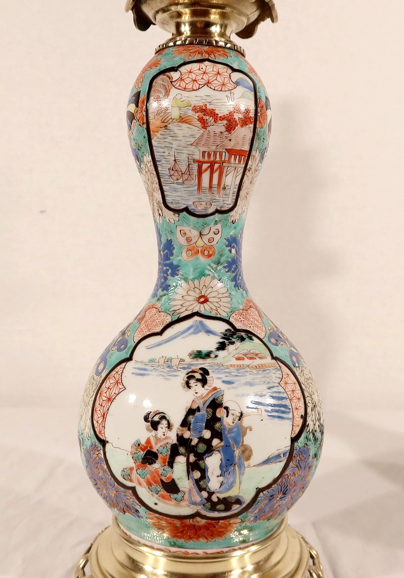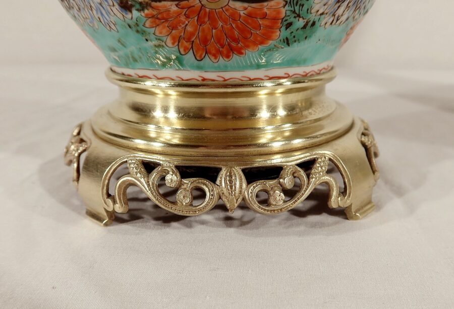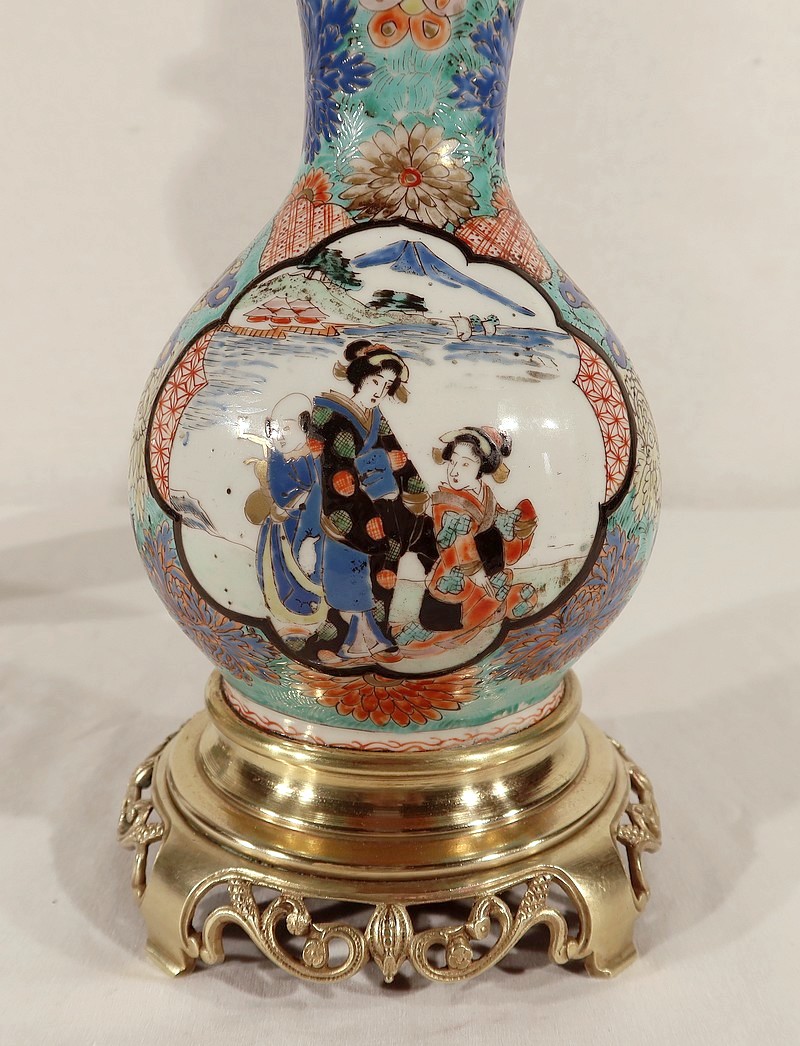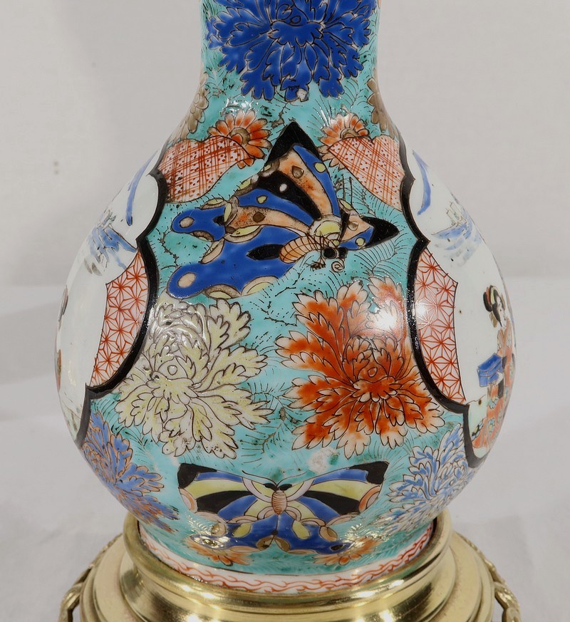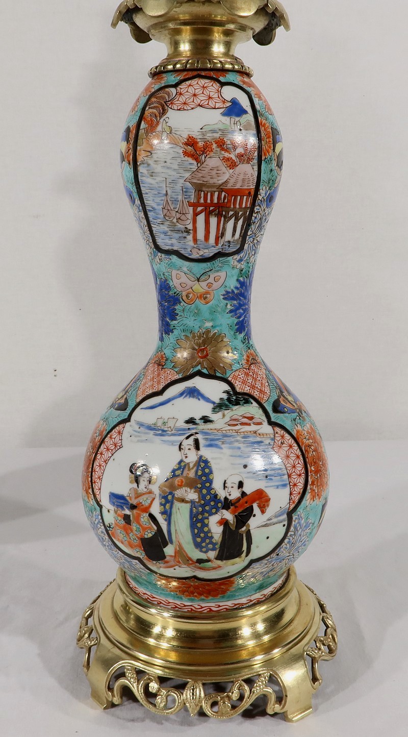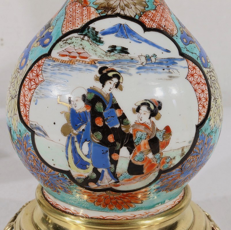 Belles lampes à pétrole datant de l’époque Napoléon III, réalisées en porcelaine japonaise et agrémentées de bronze.