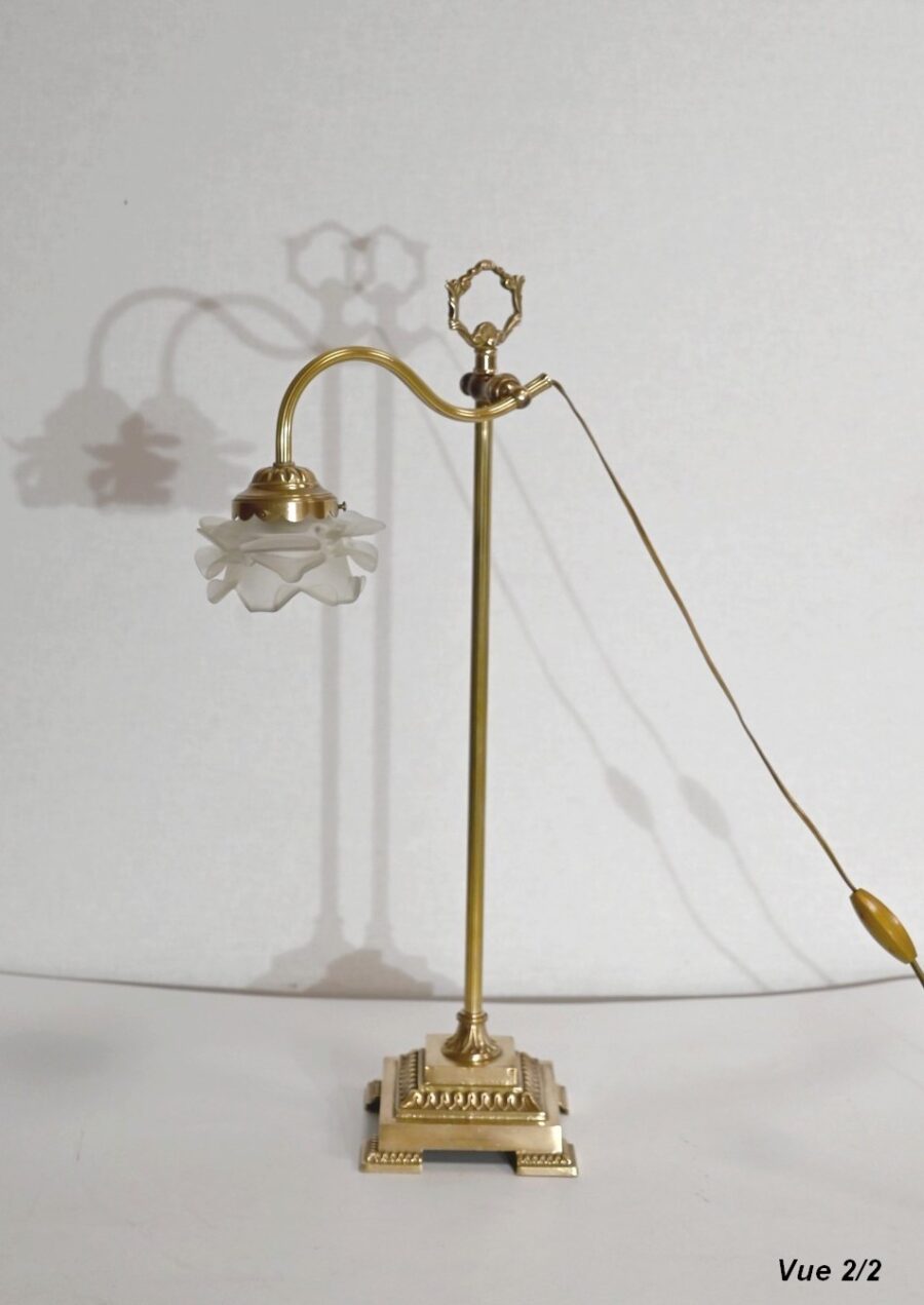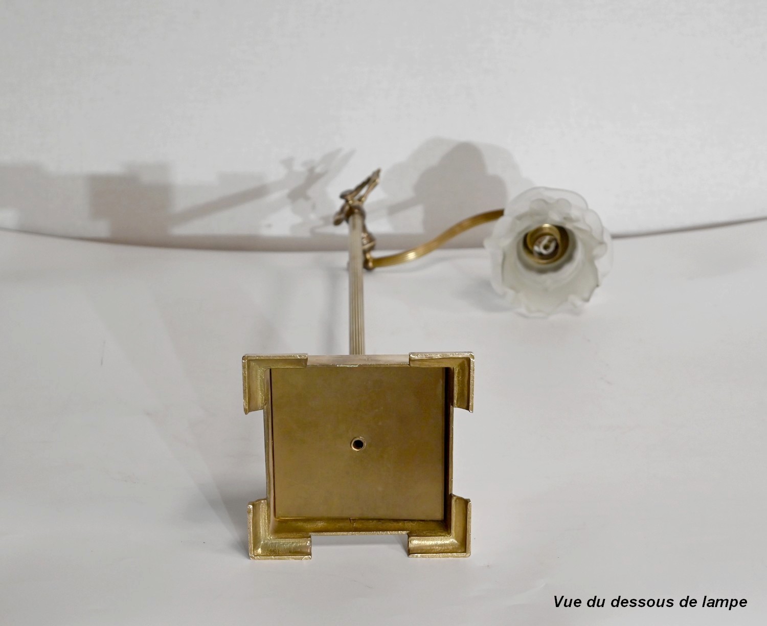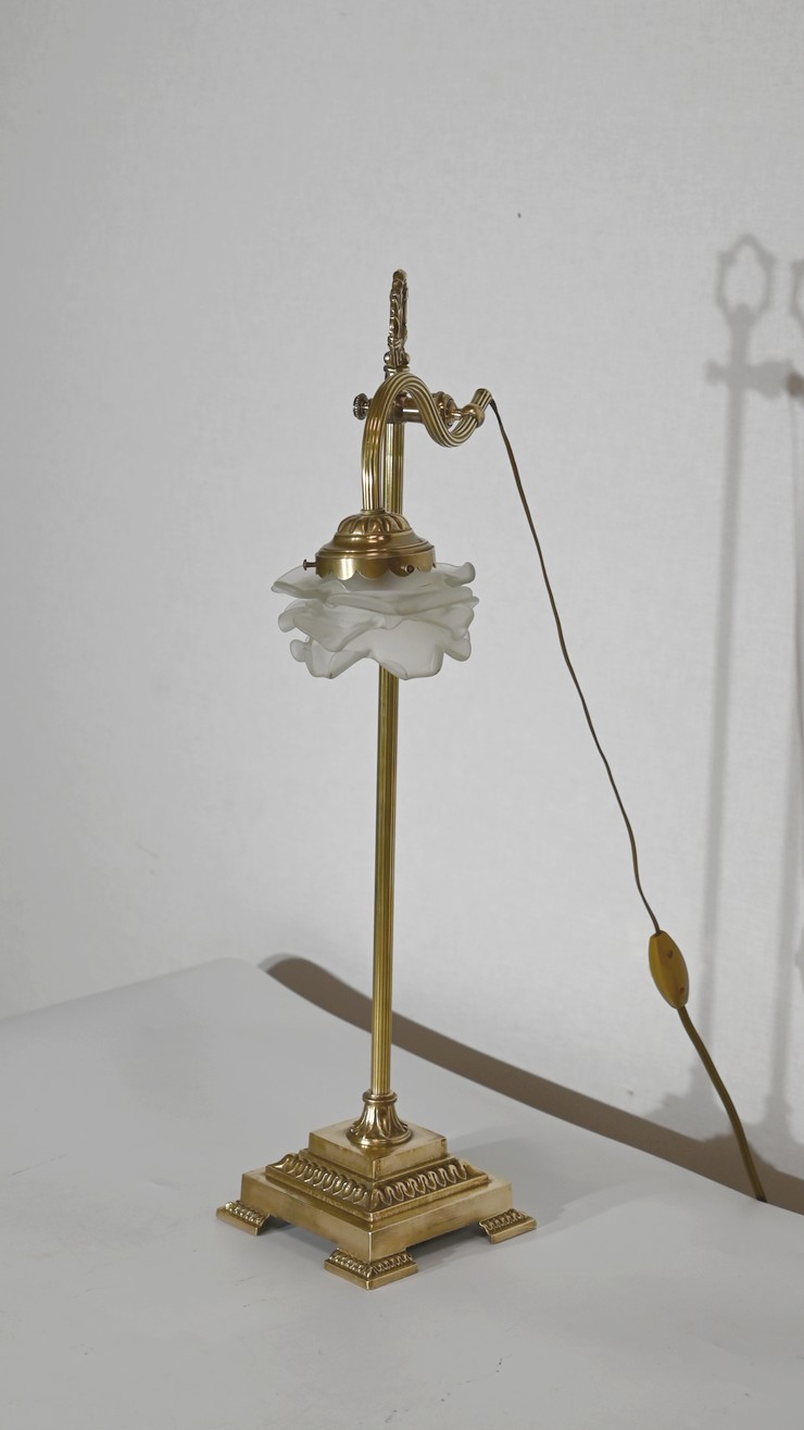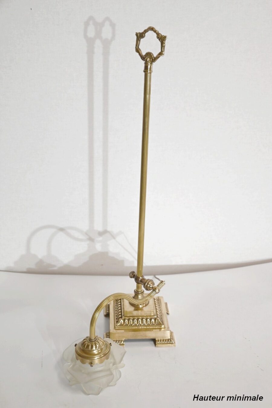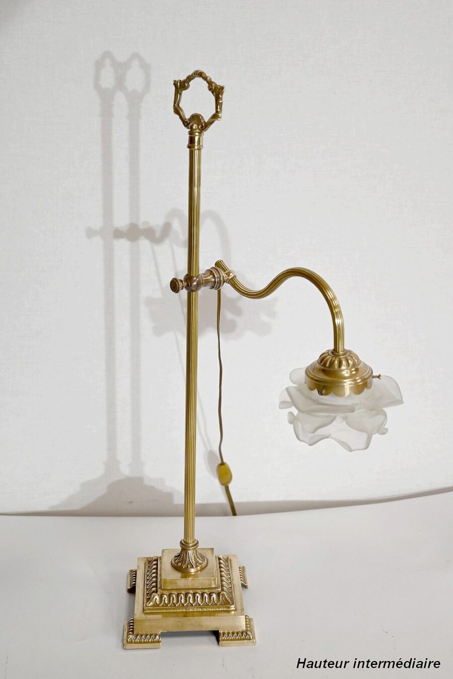 Petite Lampe Tulipe en Verre et Bronze, réglable, Art Déco – 1920