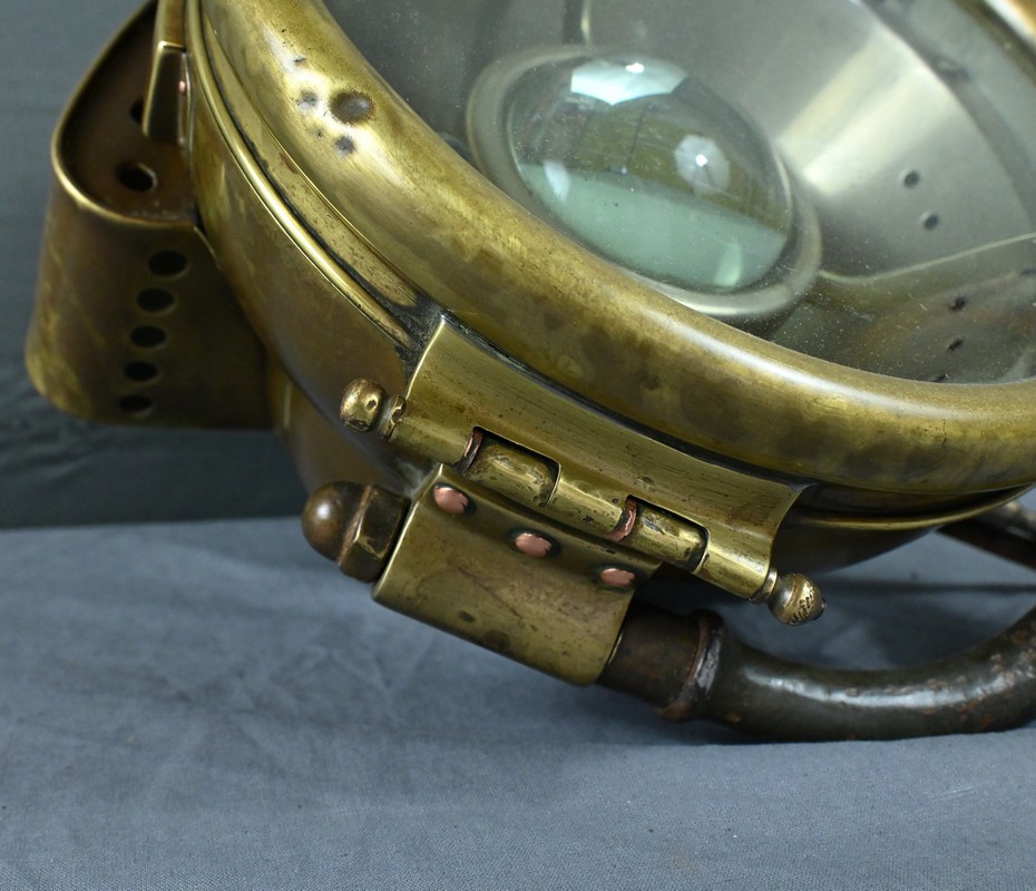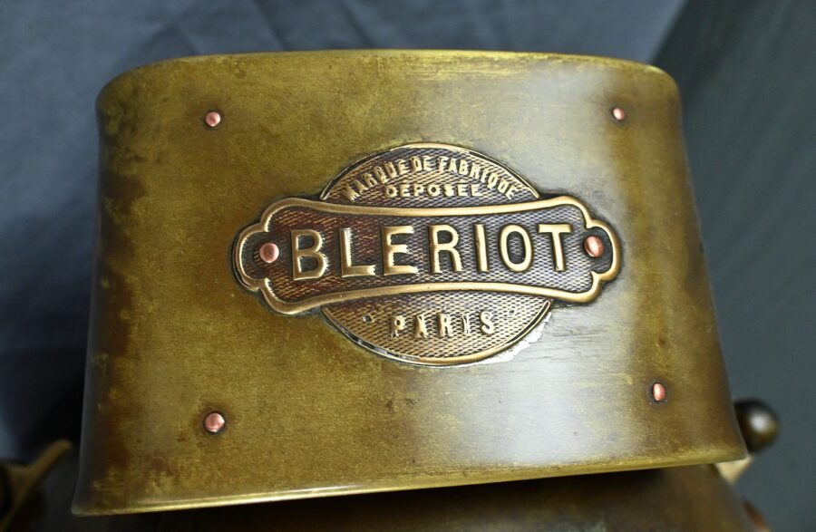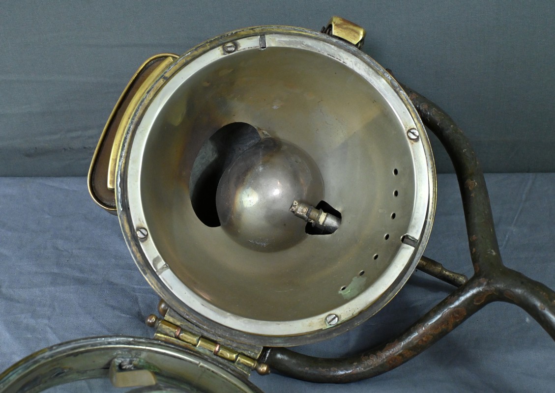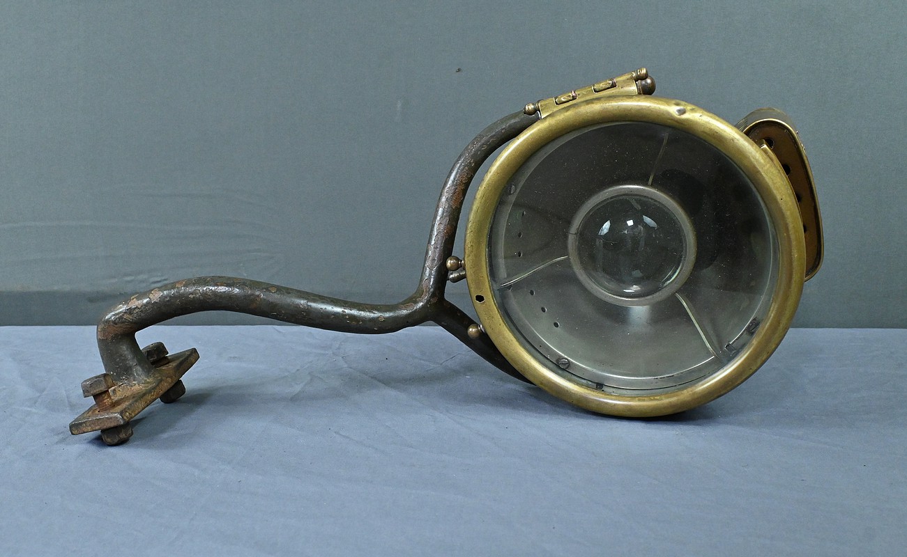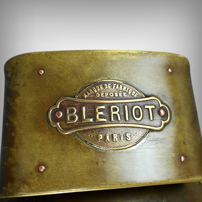 Le projecteur Blériot cylindrique à l’acétylène monté sur une fourche coudée est une merveille de l’ingénierie optique du passé. Ce dispositif d’éclairage en cuivre, autrefois utilisé pour l’éclairage intensif, fonctionne grâce à l’acétylène, un gaz dont la combustion produit une lumière intense et blanche, très prisée avant l’ère de l’électricité. Sa monture sur une fourche permet une l’orientation verticale du faisceau lumineux, rendant son usage particulièrement efficace. Ce projecteur représente une époque où l’innovation reposait sur des mécanismes ingénieux et des matériaux robustes, mettant en lumière l’ingéniosité des pionniers de l’optique et des systèmes d’éclairage. Son esthétique industrielle et ses matériaux vieillissants témoignent de son histoire et de son utilisation intensive dans le passé. Aujourd’hui, il incarne un objet patrimonial fascinant, à la croisée de la science et de l’art mécanique.