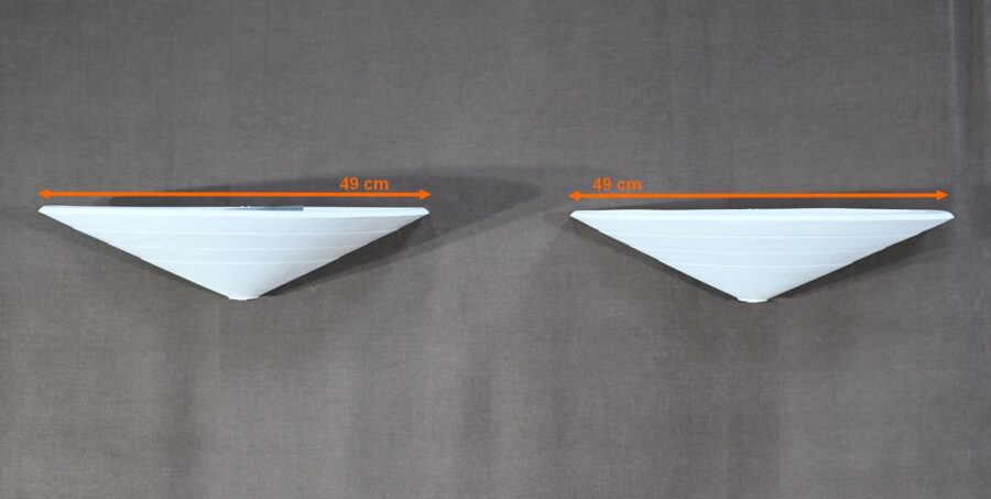 Ces appliques, qui portent la référence de modèle 1347, comportent un système d’éclairage indirect, halogène ou LED, avec grille de protection.